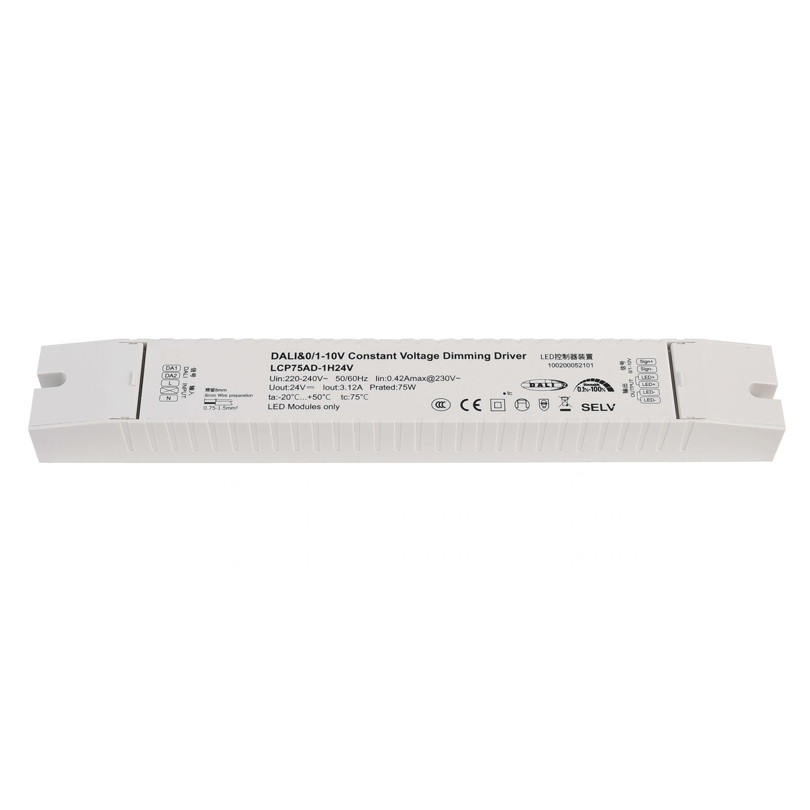 Alimentatore dimmerabile via 0-10 / 1-10V, Touch dimmer via oulsante a 230V o DALI1 e DALI2, disponibile con potenza: 40W e 75W ideale per alimentare tutti i prodotti che vanno a 24V DC come lampadine a led, faretti a led, strisce led, fari led, adatto in ambienti interni. Questo trasformatore è progettato per dispositivi led e quindi costituiscono una fonte di alimentazione ideale per tutte le applicazioni LED.