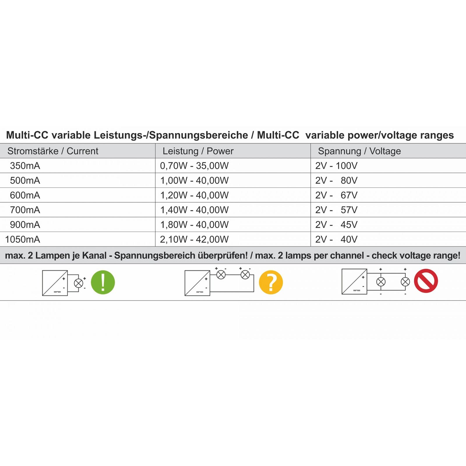 Corrente di uscita: 350/500/600/700/900/1050 mA