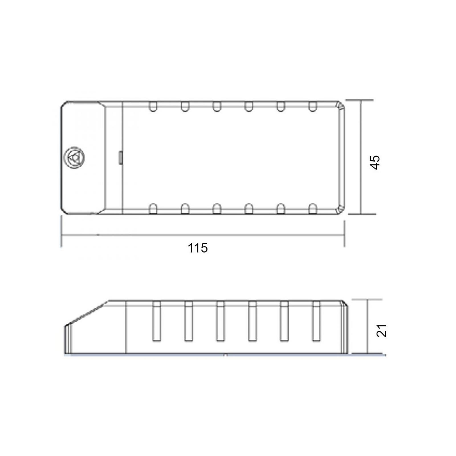 Inoltre grazie al design piccolo e compatto può essere nascosto facilmente in cassette di derivazione. Questi trasformatori LED sono tecnicamente progettati proprio per i LED e quindi costituiscono una fonte di alimentazione ideale per tutte le applicazioni LED. Grazie a questo trasformatore i I LED collegati non sono quindi esposti a sbalzi di tensione dannosi o fluttuazioni. Dotato di protezione da corto circuito e protezione da sovraccarico.