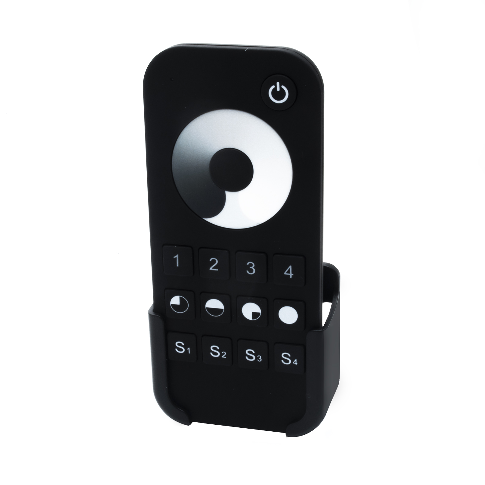 Telecomando RF adatto per controllare strisce LED monocromatiche. Può gestire fino a 4 zone e 4 scenari. Ad ogni telecomando può essere abbinato uno o più ricevitori. Si alimenta con 2 batterie di tipo AAA. Il telecomando lavora in RF con frequenza 2.4 GHz questo consente un raggio di azione fino a 30 metri a differenza dei normali telecomandi ad infrarosso.
