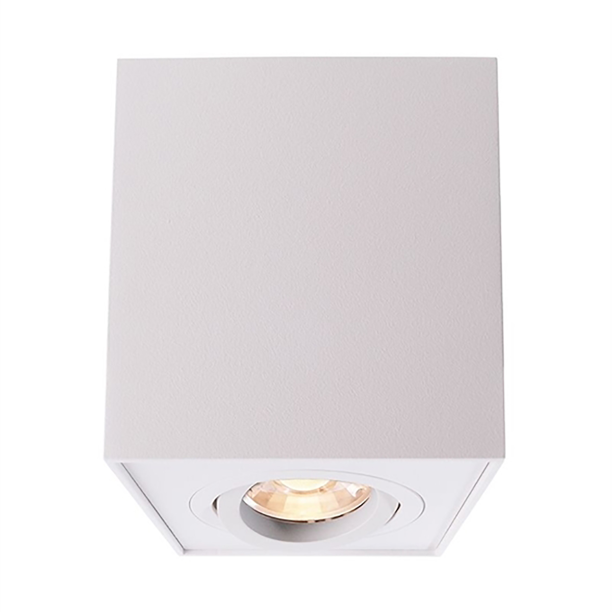 Faretto moderno da soffitto ideale per ambienti privi di controsoffitto dotato di attacco GU10 realizzato in alluminio di forma quadrata compatibile con lampade e faretti con attacco GU10, ideale per l'illuminazione interna a soffitto utile per dare luce a cucine, uffici, soggiorni, bagni, negozi, attività commerciali, locali commerciali, pizzerie, bar, pub.