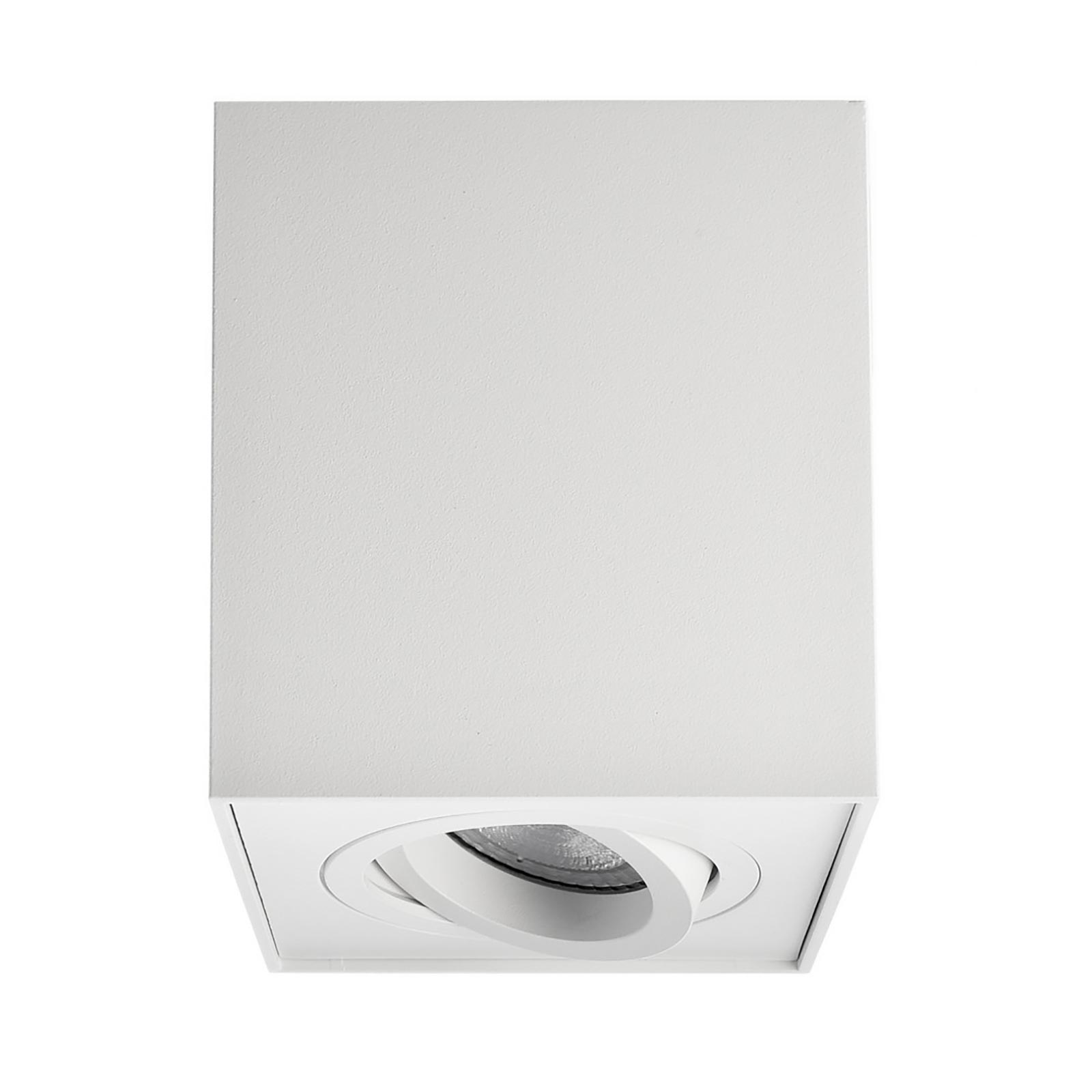 Faretto moderno da soffitto ideale per ambienti privi di controsoffitto dotato di attacco GU10 realizzato in alluminio di forma quadrata compatibile con lampade e faretti con attacco GU10, ideale per l'illuminazione interna a soffitto utile per dare luce a cucine, uffici, soggiorni, bagni, negozi, attività commerciali, locali commerciali, pizzerie, bar, pub.