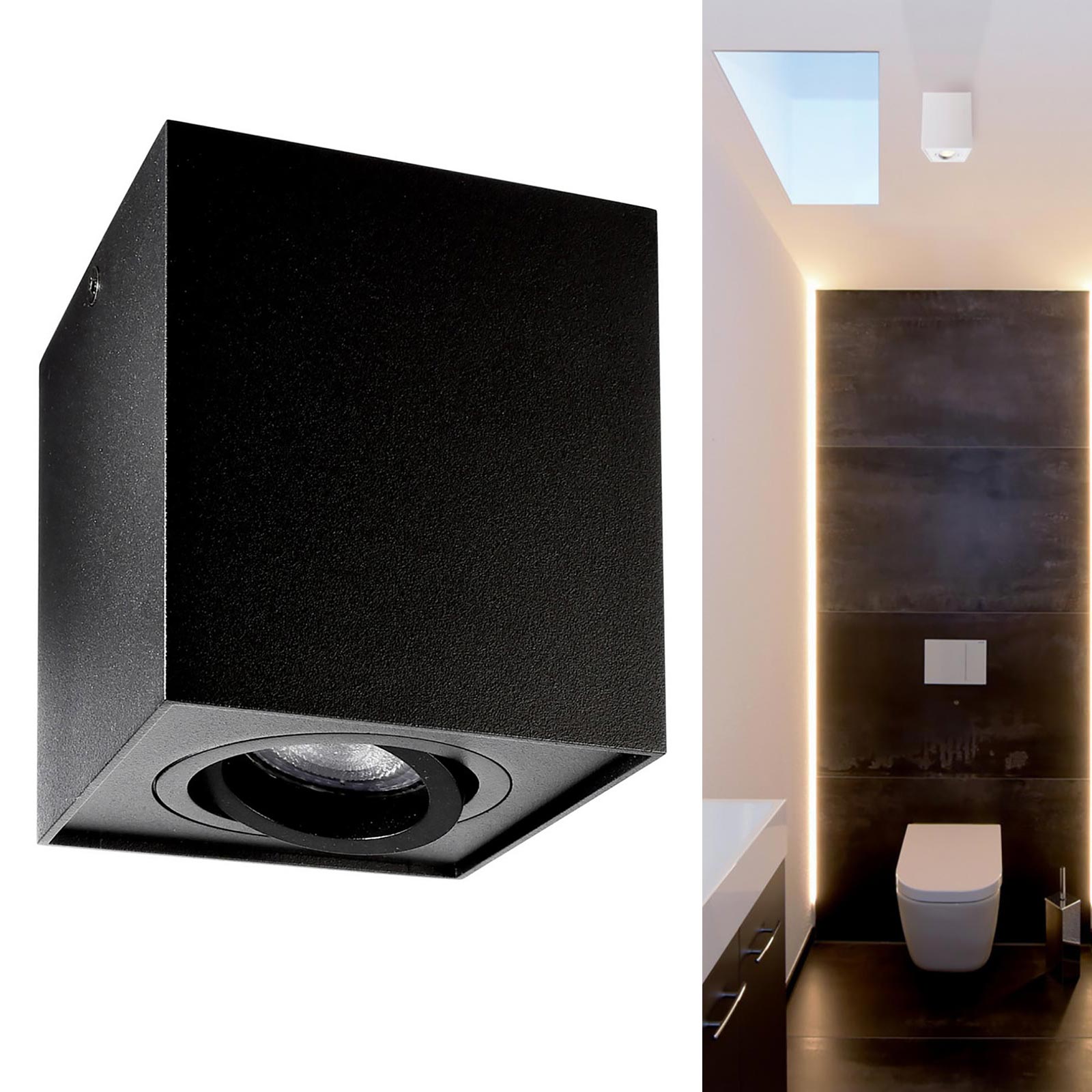 Faretto moderno da soffitto ideale per ambienti privi di controsoffitto dotato di attacco GU10 realizzato in alluminio di forma quadrata compatibile con lampade e faretti con attacco GU10, ideale per l'illuminazione interna a soffitto utile per dare luce a cucine, uffici, soggiorni, bagni, negozi, attività commerciali, locali commerciali, pizzerie, bar, pub.