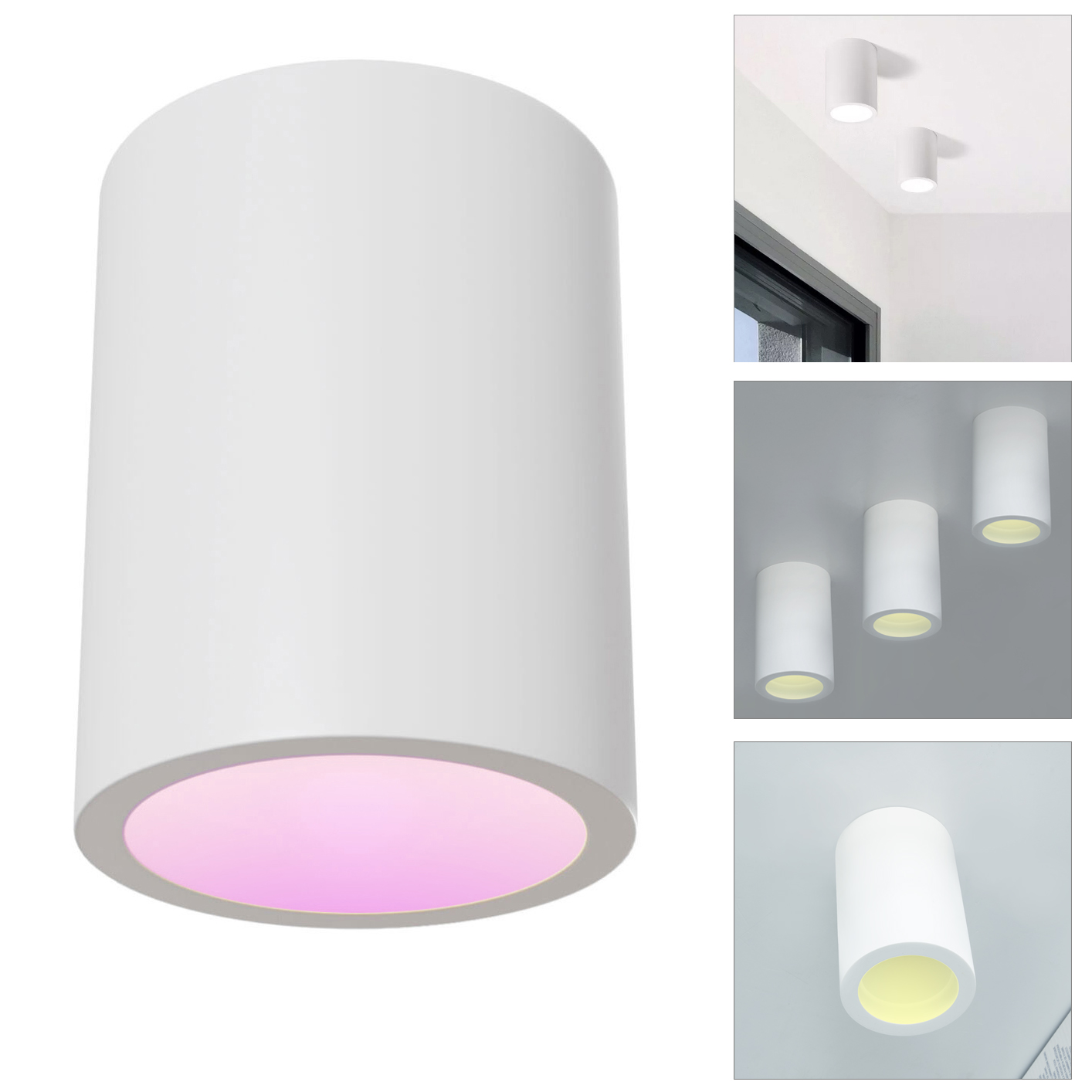 Faretto LED in gesso con attacco GU10 adatto per installazioni a soffitto ideale per l'illuminazione di ambienti interni come corridoi, ingressi, cucine moderne, soggiorni, salotti, all'interno di negozi, attività commerciali ed in tutti quei posti dove si vuole dare un tocco di originalità ai propri ambienti. Il faretto ha un design minimal di forma cilindrica, supporta lampade e faretti con attacco GU10.