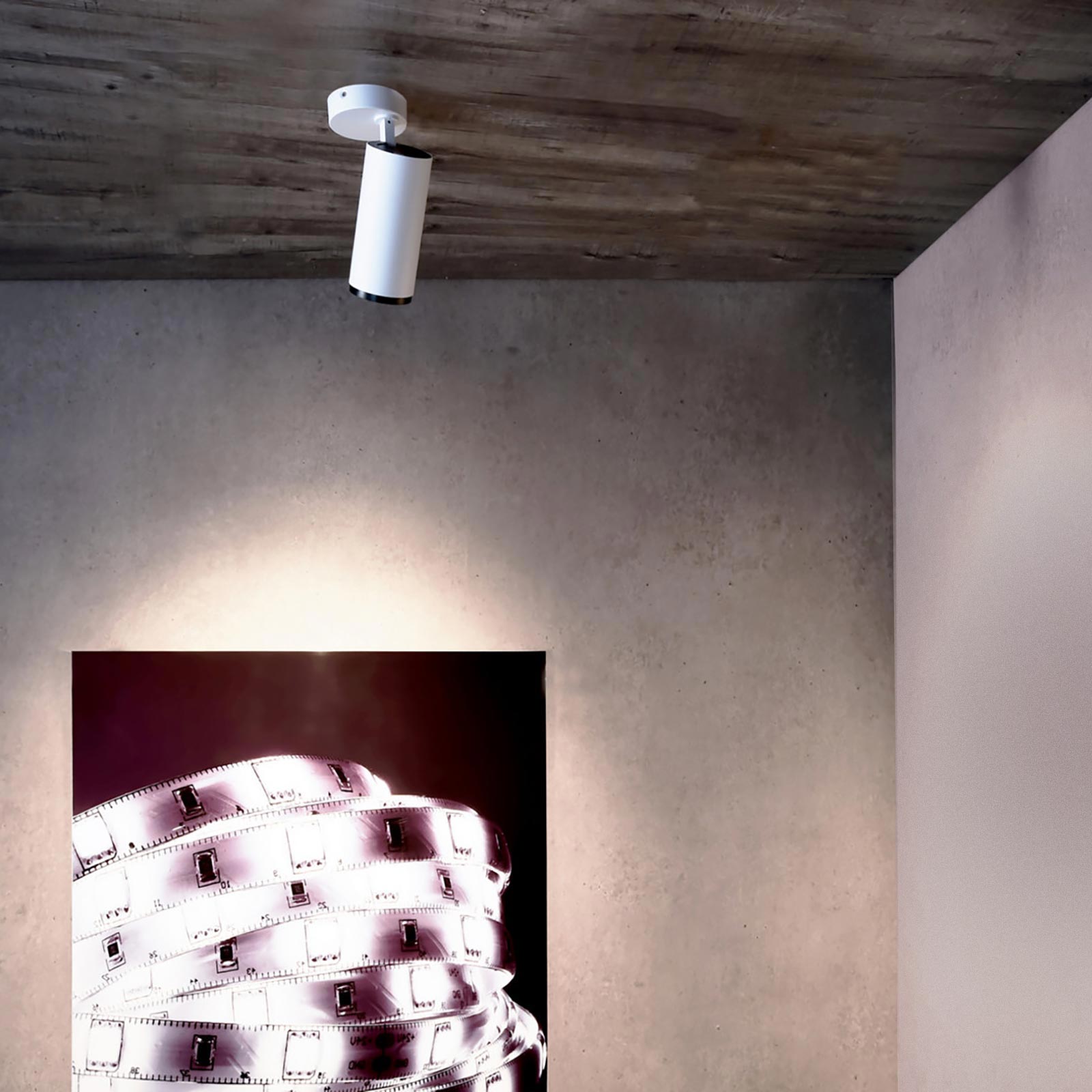 Realizzato interamente alluminio è disponibil in 2 colori: Biano e Nero con possibilità di orientare il fascio secondo le proprie esigenze fino a 360 gradi, inoltre è possibile anche il faretto fino a 90 gradi. Questo faretto monta un LED COB di ultima generazione da 10W dimmerabile. Ideale per adattarsi a tutti gli ambienti per ogni situazioni. Facile da installare va fissato a soffitto e si alimenta direttamente alla rete elettrica a 230V. Il LED integrato emette un'intensità luminosa di 1300 lumen.