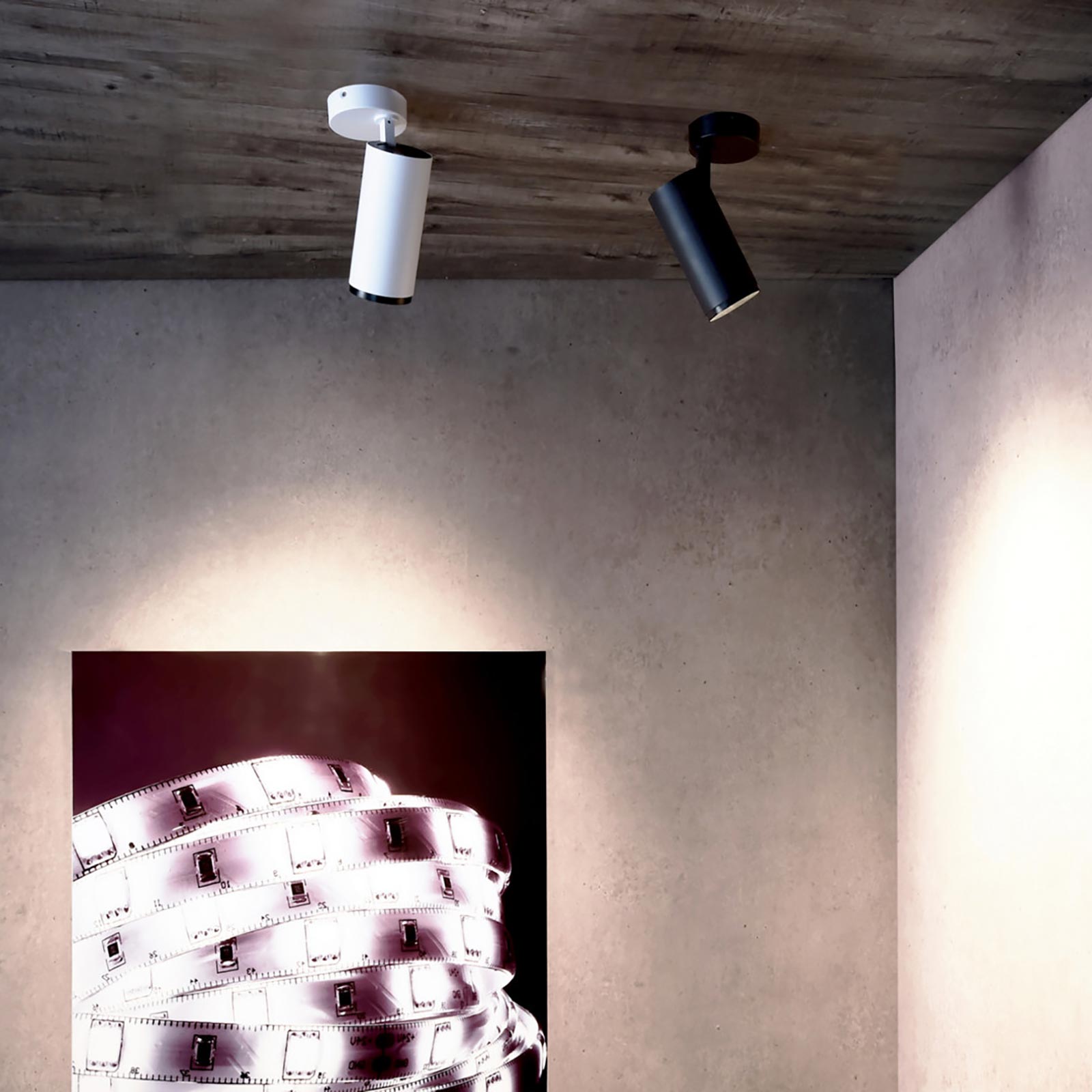 Realizzato interamente alluminio è disponibil in 2 colori: Biano e Nero con possibilità di orientare il fascio secondo le proprie esigenze fino a 360 gradi, inoltre è possibile anche il faretto fino a 90 gradi. Questo faretto monta un LED COB di ultima generazione da 10W dimmerabile. Ideale per adattarsi a tutti gli ambienti per ogni situazioni. Facile da installare va fissato a soffitto e si alimenta direttamente alla rete elettrica a 230V. Il LED integrato emette un'intensità luminosa di 1300 lumen.