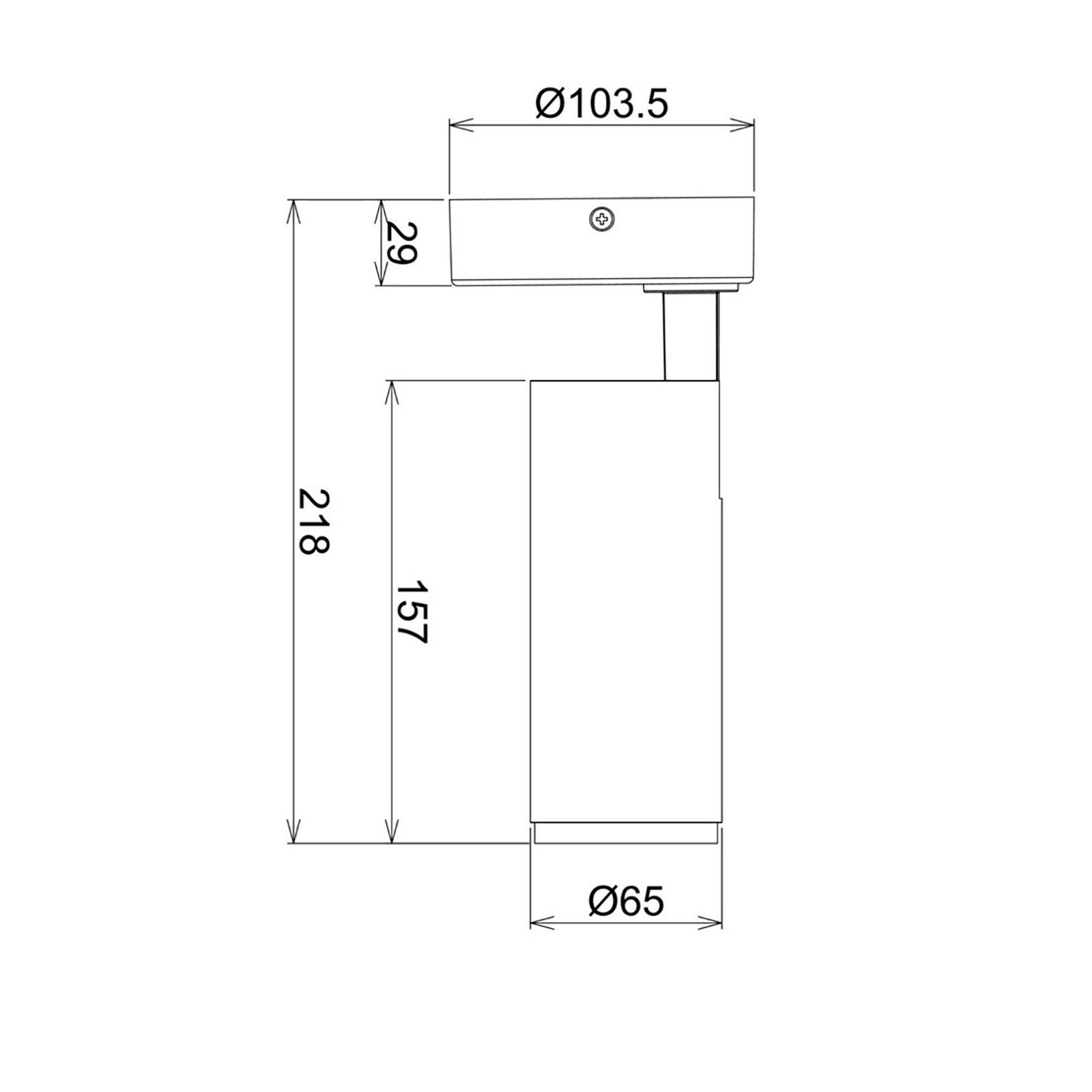 Dimensioni del faretto: 157mm x Ø 65mm - Dimensioni della base di fissaggio: 29mm x Ø 103.5mm