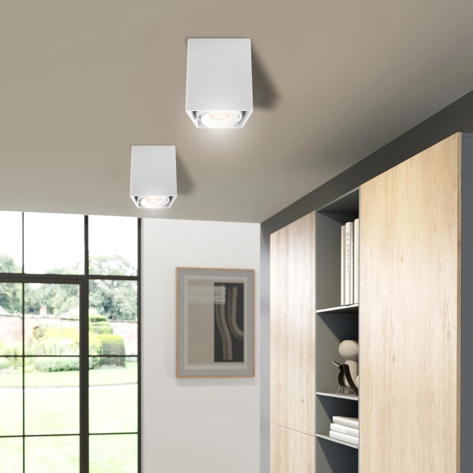 Design moderno ed essenziale dalla froma quadrata ideale per illuminare e arredare nello stesso tempo i propri ambienti. Dotato di base di fissaggio a soffito alla quale si aggancia il corpo illuminante. La sua forma lo rende compatibile con ogni stile architettonico.