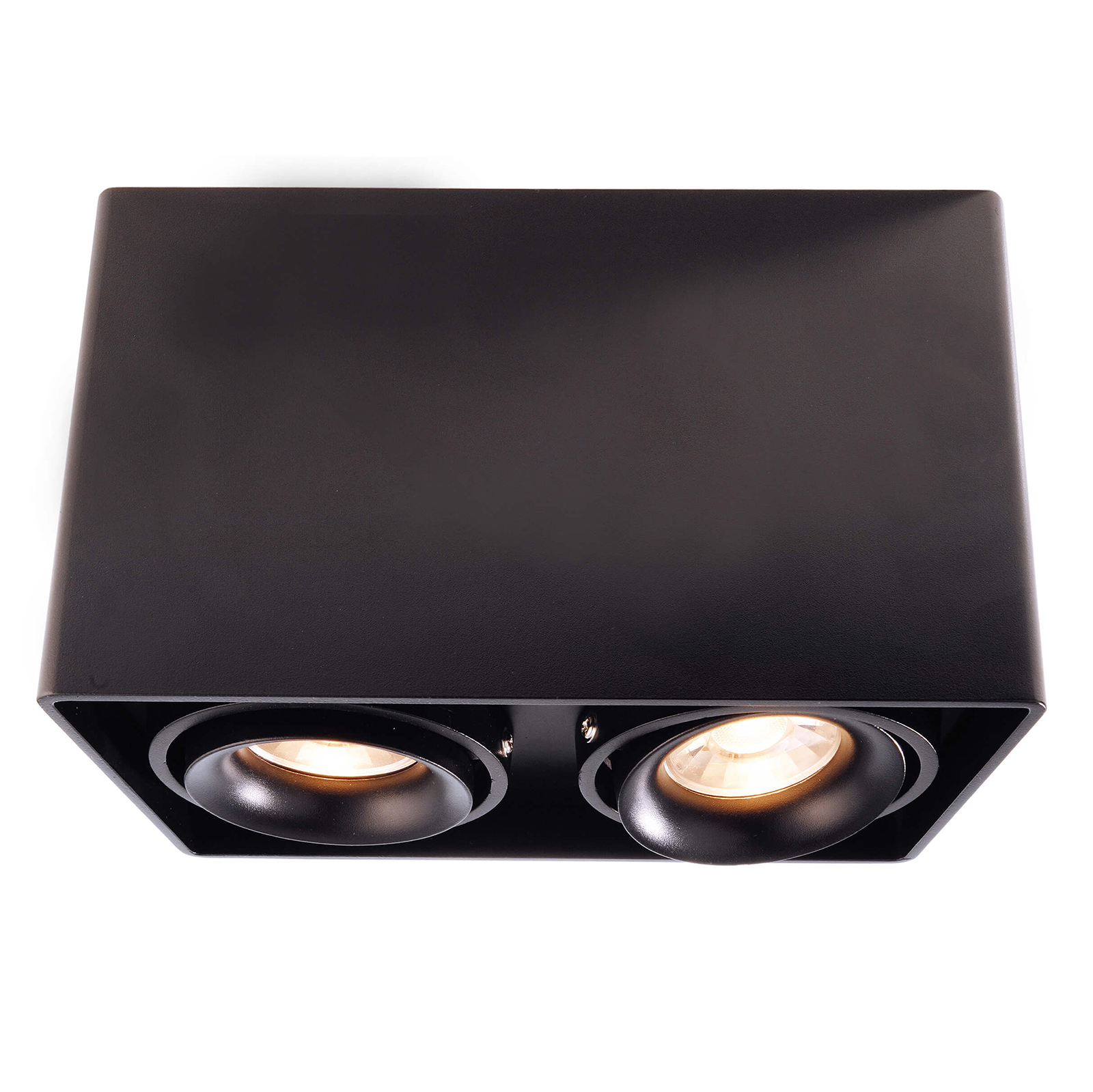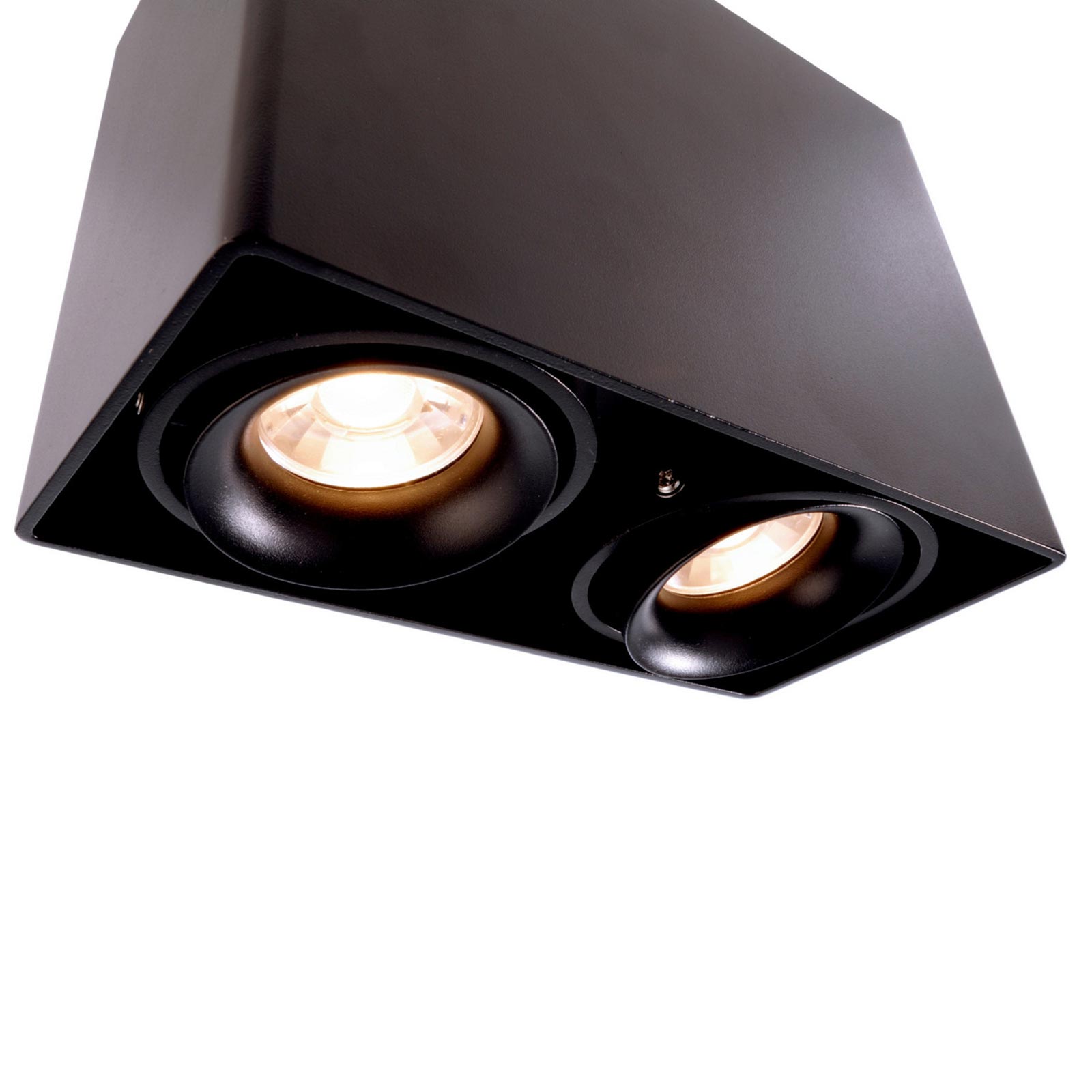 Faretto moderno da soffitto con doppio diffusore orientabile con attacco GU10 realizzato in alluminio pressofuso ideale per l'illuminazione interna di uffici, negozi, all'interno di abitazioni per illuminare cucine moderne, soggiorni, camere da letto. Supporta lampade e faretti con attacco GU10. Dotato di base di fissaggio alla quale si aggancia il corpo illuminante ideale per ambienti privi di controsoffitto