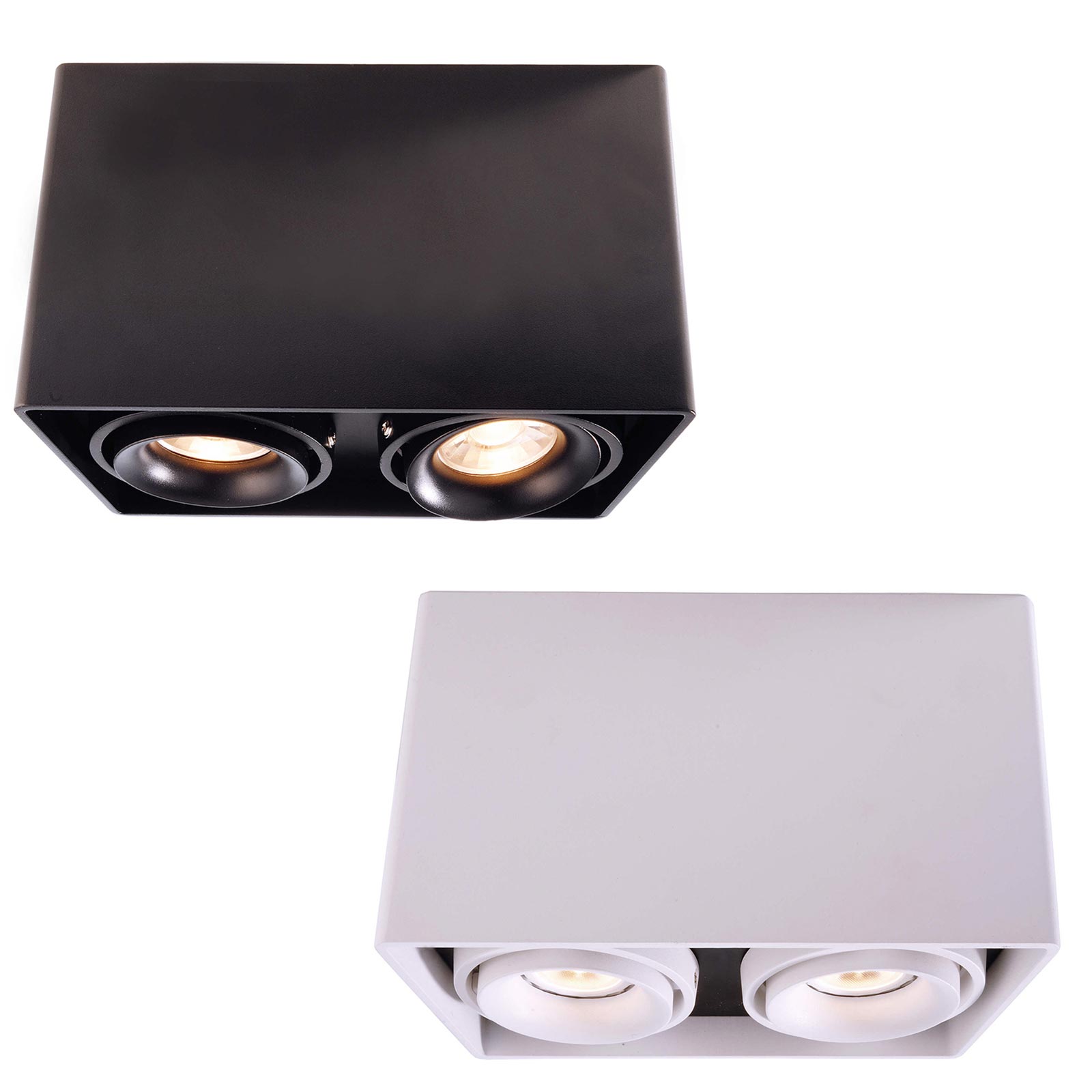 Faretto moderno da soffitto con doppio diffusore orientabile con attacco GU10 realizzato in alluminio pressofuso ideale per l'illuminazione interna di uffici, negozi, all'interno di abitazioni per illuminare cucine moderne, soggiorni, camere da letto. Supporta lampade e faretti con attacco GU10. Dotato di base di fissaggio alla quale si aggancia il corpo illuminante ideale per ambienti privi di controsoffitto