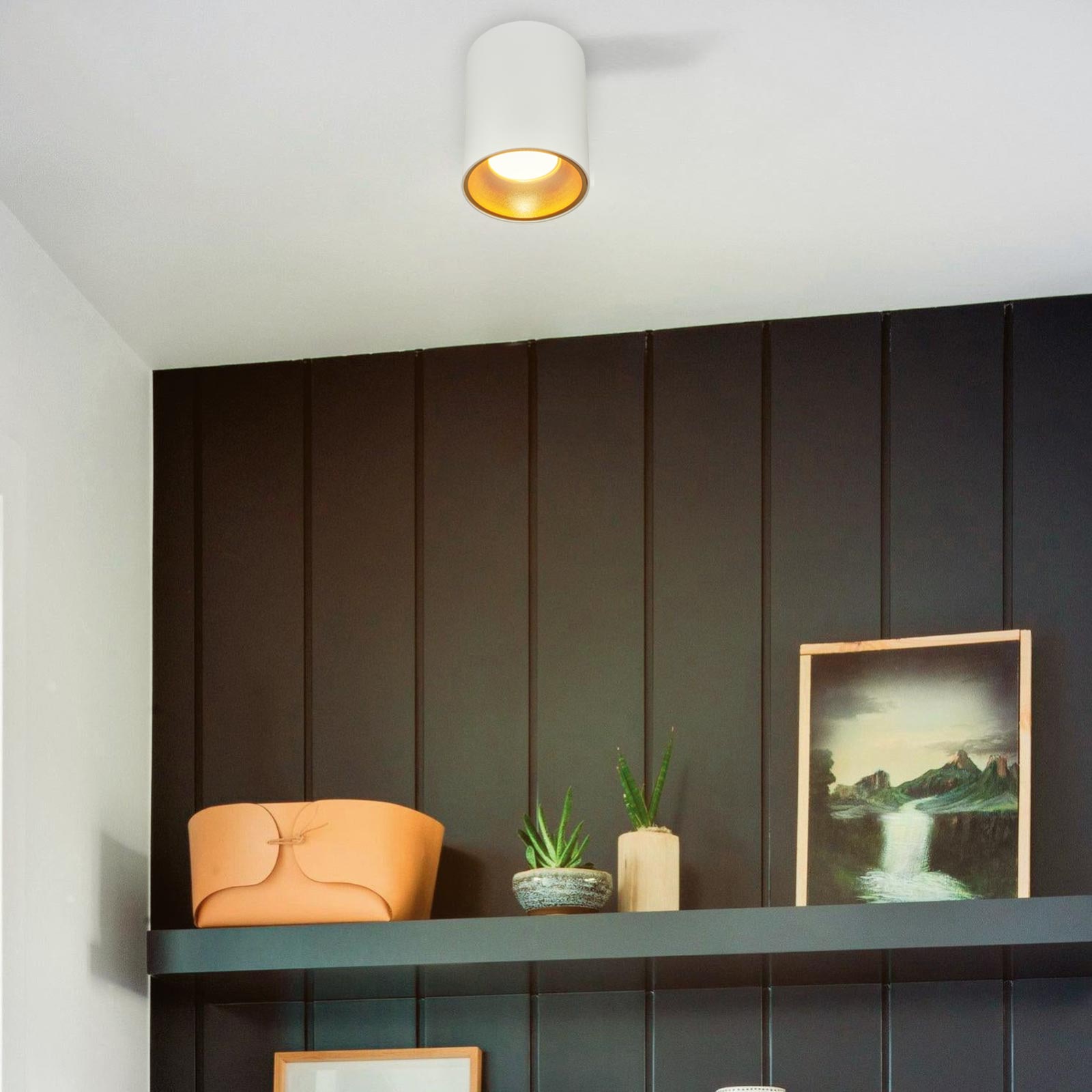 Design elegante e versatile: L'abbinamento del colore dorato del diffusore con il colore bianco del corpo rende questo faretto elegante e raffinato, inoltre il suo design cilindrico si adatta perfettamente a tutti gli ambienti moderni, conferendo un tocco di originalità. Il pratico sistema a molle per il fissaggio garantisce maggiore stabilità senza l'uso di ferma faretti in metallo.