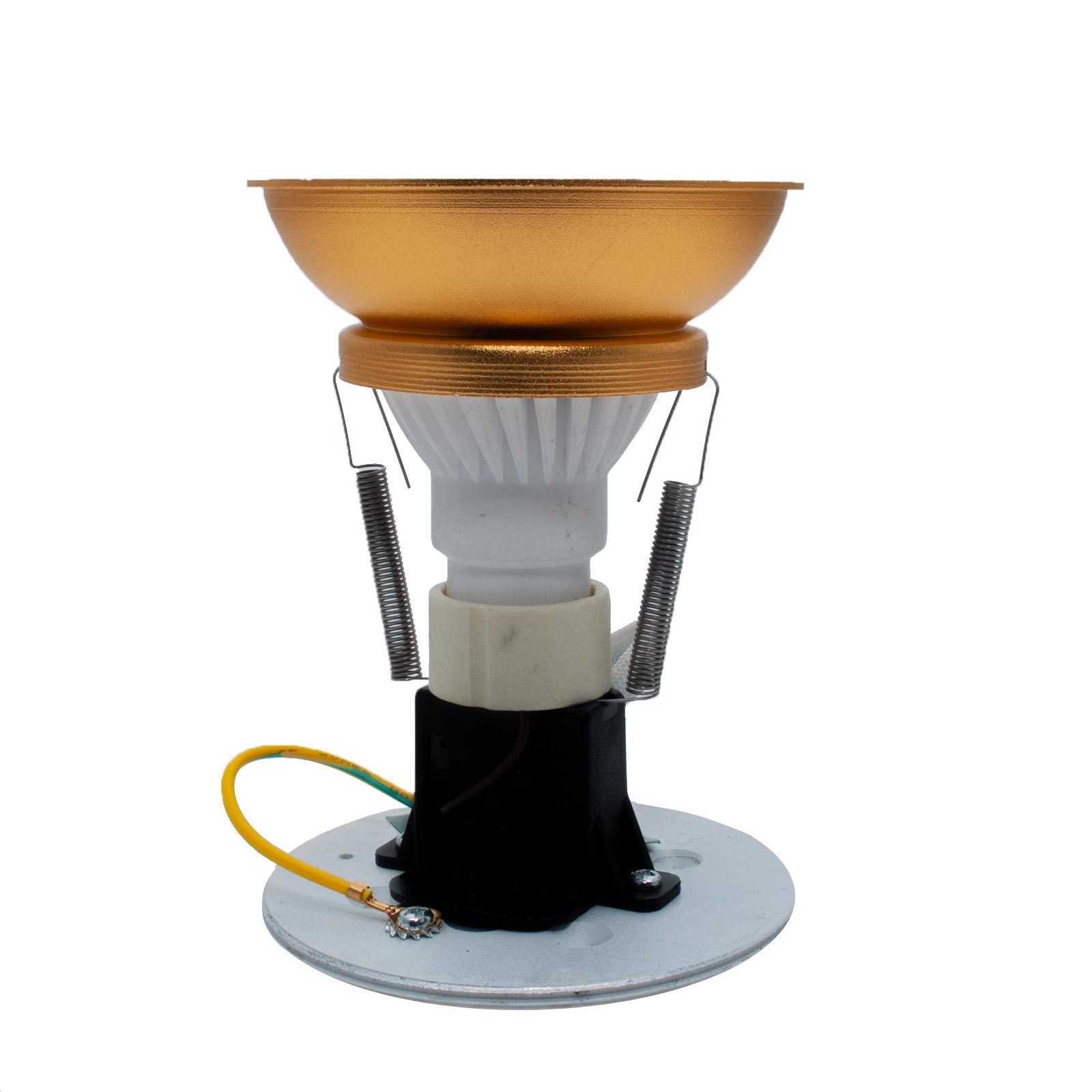 Design elegante e versatile: L'abbinamento del colore dorato del diffusore con il colore bianco del corpo rende questo faretto elegante e raffinato, inoltre il suo design cilindrico si adatta perfettamente a tutti gli ambienti moderni, conferendo un tocco di originalità. Il pratico sistema a molle per il fissaggio garantisce maggiore stabilità senza l'uso di ferma faretti in metallo.