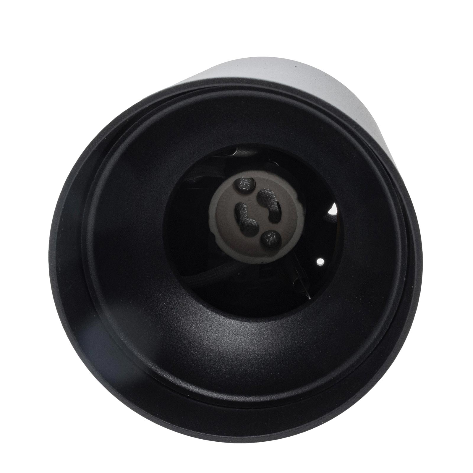 Design elegante e versatile: Disponibile nei colori bianco o nero, il suo design cilindrico si adatta perfettamente a tutti gli ambienti moderni, conferendo un tocco di originalità. Il pratico sistema a molle per il fissaggio garantisce maggiore stabilità senza l'uso di ferma faretti in metallo.