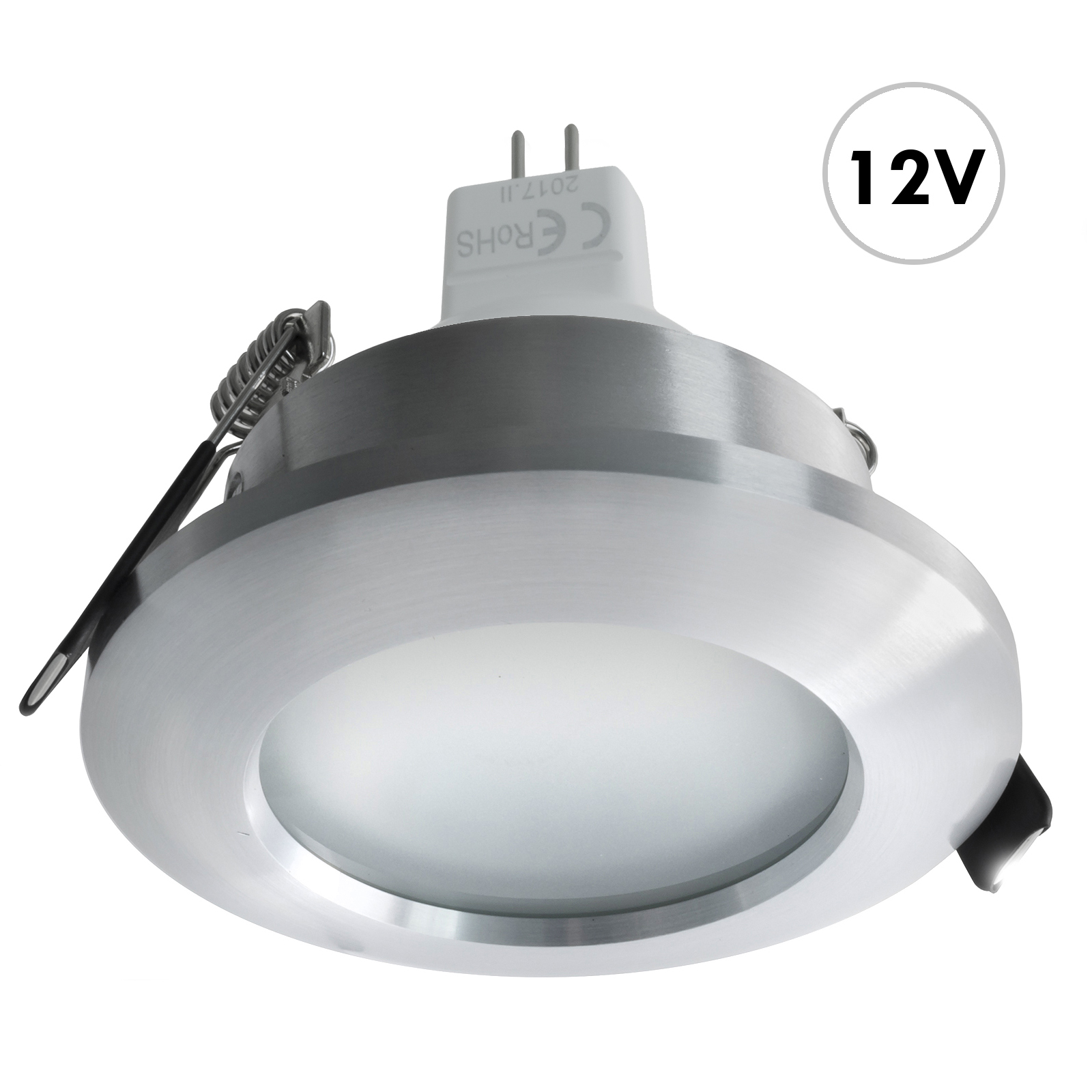 Faretto argentato con lampada LED a bassa tensione dal design moderno realizzato in alluminio bombato e vetro opaco con diffusore orientabile di forma rotonda completo di alette a molla ideale per l'incasso in soffitti di cartongesso. Il portafaretto viene fornito completo di lampada LED 7W MR16 12V con attacco GU5.3 ideale per l'illuminazione interna in controsoffitti di cartongesso, mensole, ripiani.