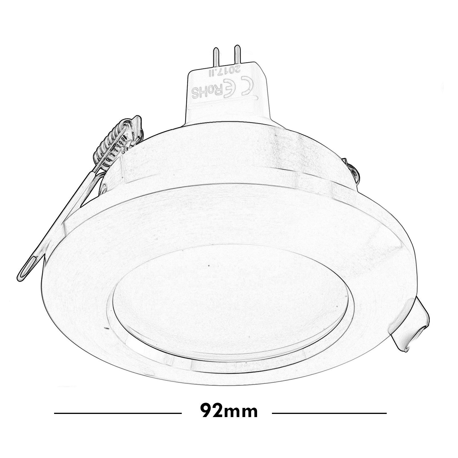 Dimensioni consigliate per il foro dell'incasso: 68mm - Dimensioni esterne: 92mm - Altezza della lampada 55mm. Nella confezione è incluso l'attacchino GU5.3.