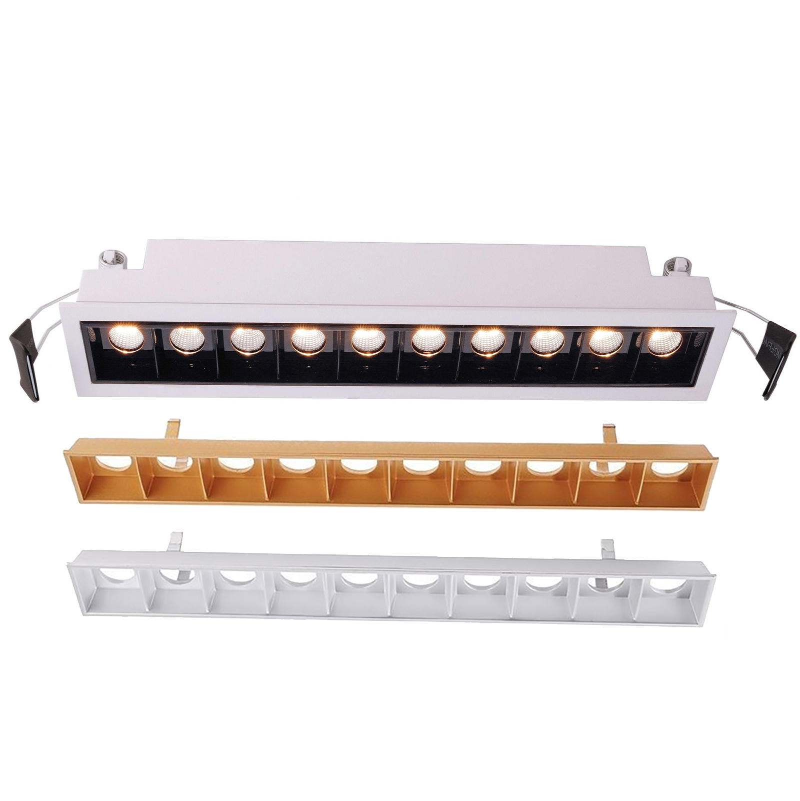 Dimensioni del foro per l'incasso: 250mm x 36mm - Dimensioni del faretto: 257mm x 52mm x 44mm