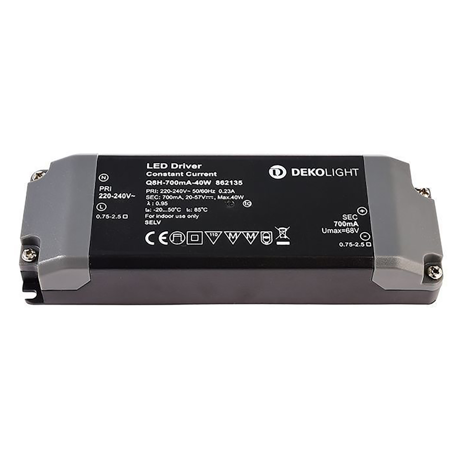 NB. è possibile acquistare il faretto anche completo di alimentatore dimmerabile con tensione di uscita: 28-56V dc - Corrente di uscita: 700 mA - Tensione di ingresso: 220-240 V CA/50-60 Hz- massima potenza: 19.60-40.00W - Dimensioni: 166mm x 53mm x 24mm