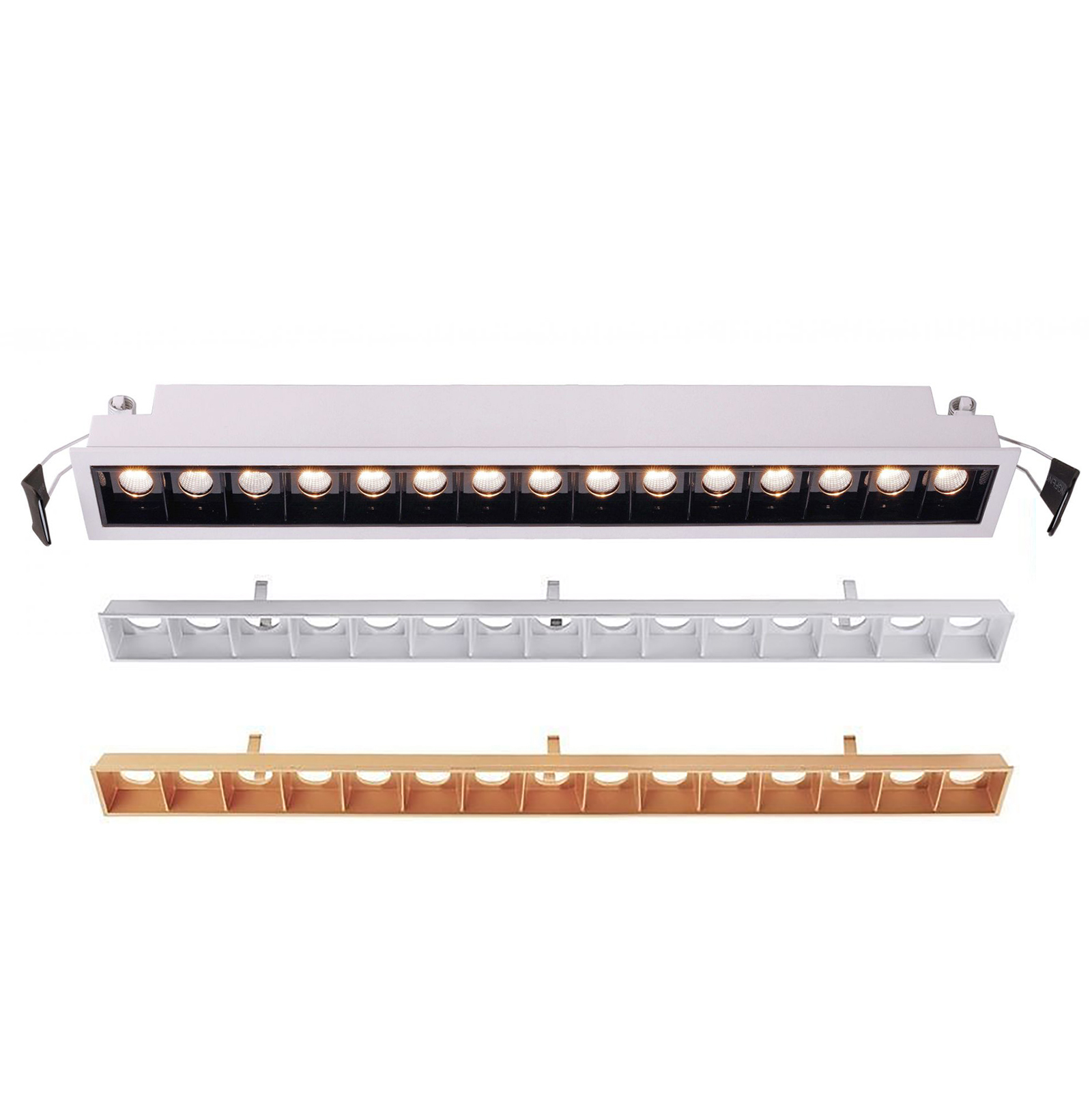 Questo faretto è dotato di mascherina intercambiabile disponibile in 3 colori: con nera, silver, e dorata. Ha un angolo di luce di 45 gradi con un'intensità luminosa di 2400 lumen, adatto anche per bar, reception, reparti commerciali, reparti controllo qualità, sala conferenza, show room.