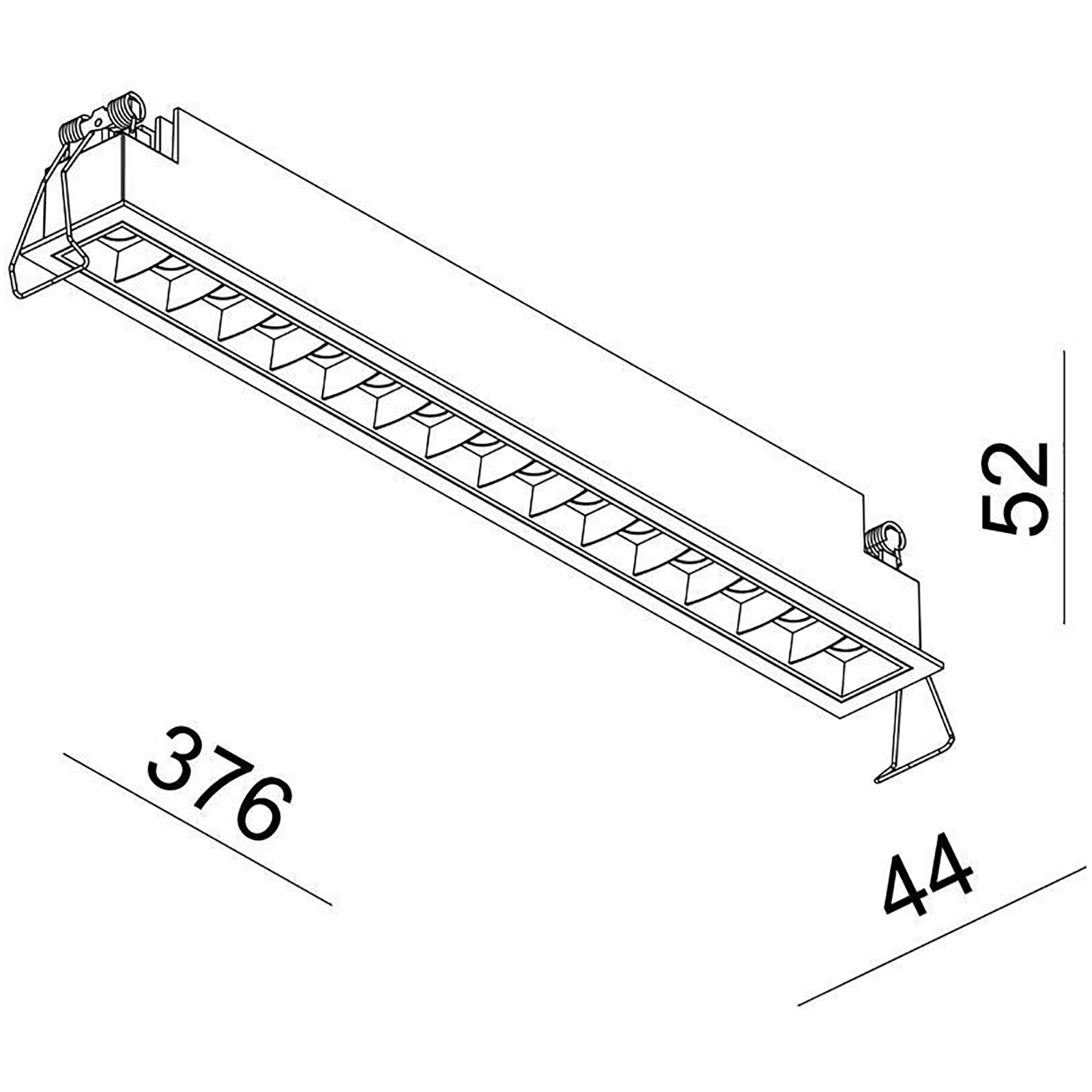 Dimensioni del foro per l'incasso: 369mm x 36mm - Dimensioni del faretto: 376mm x 52mm x 44mm