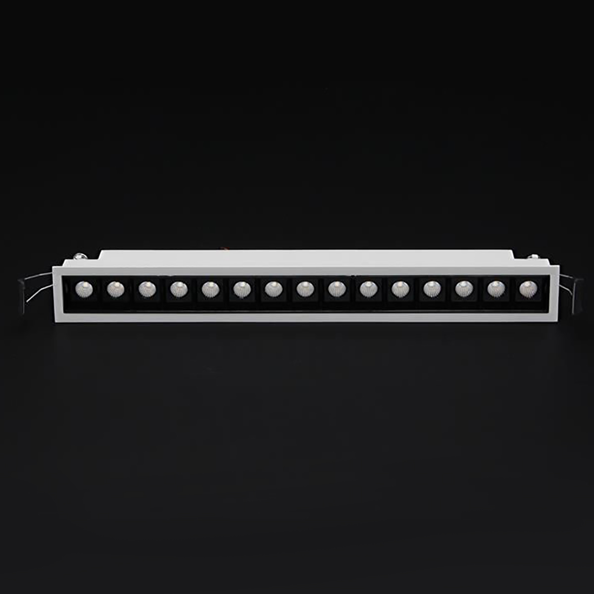 Questo faretto è dotato di mascherina intercambiabile disponibile in 3 colori: con nera, silver, e dorata. Ha un angolo di luce di 45 gradi con un'intensità luminosa di 2400 lumen, adatto anche per bar, reception, reparti commerciali, reparti controllo qualità, sala conferenza, show room.