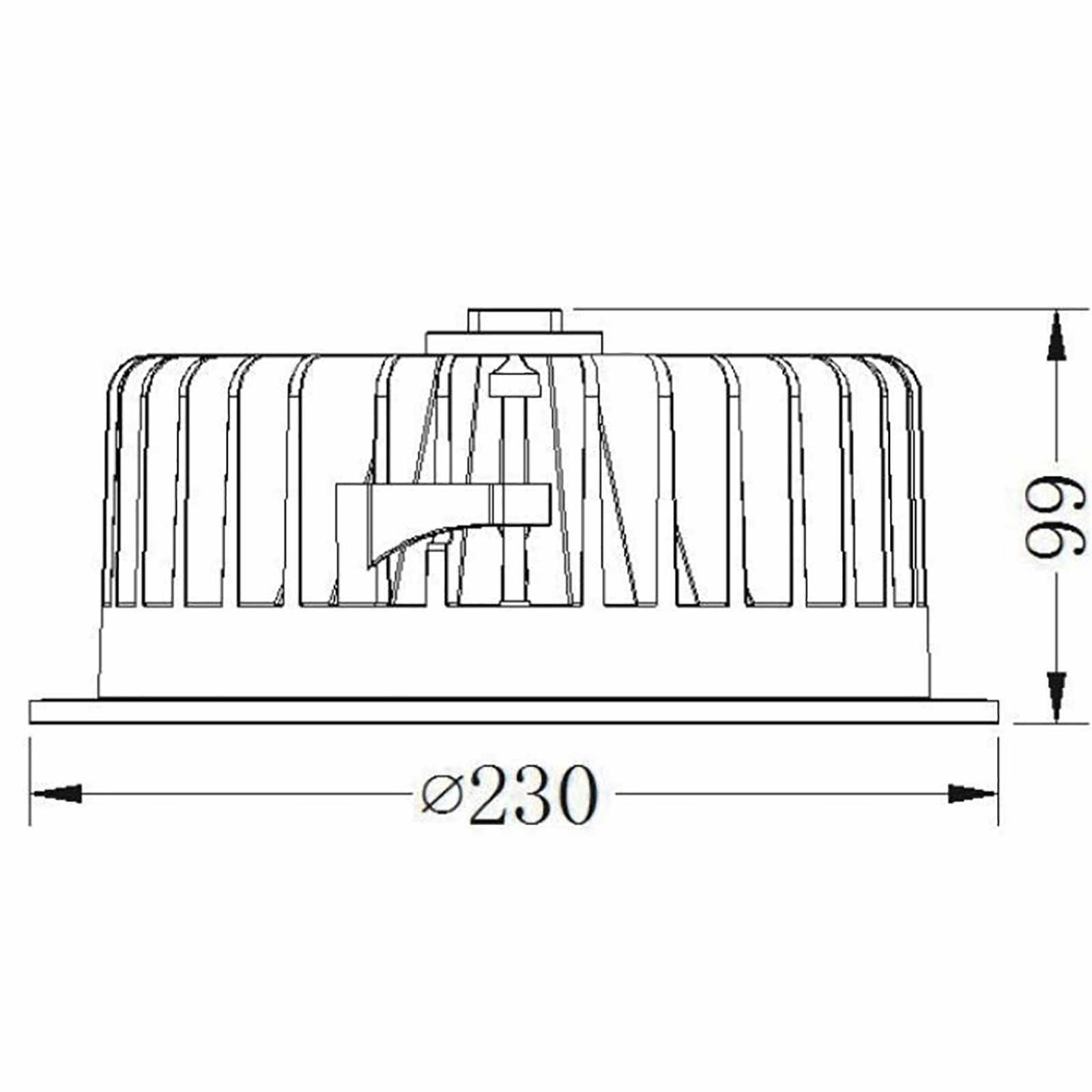 Dimensioni del faretto: Ø 190mm x 86mm - Dimensioni del foro per l'incasso: 170mm