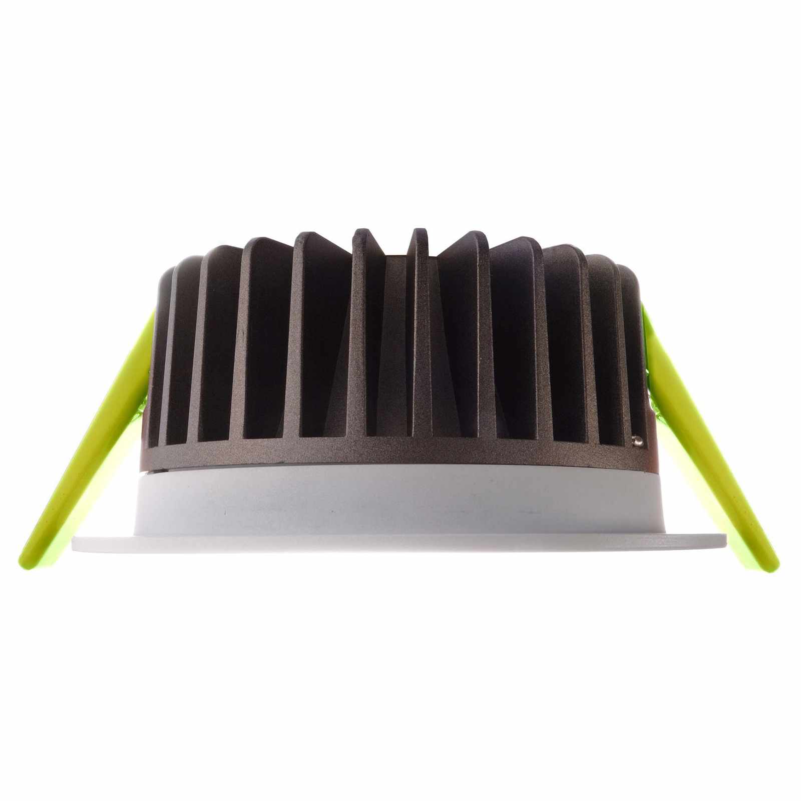 COB 95 elegante faretto professionale di forma tonda realizzato in alluminio di colore bianco con materiali di qualità superiore dotato di alette a molla per l'incasso in controsoffitti di cartongesso compatibile con tutti i fori da 95mm. Il faretto è dotato di un LED COB integrato di ultima generazione ad alta efficienza energetica con una potenza di 13W. Ideale per l'illuminazione commerciale e civile come bar, reception, uffici, reparti commerciali, reparti controllo qualità, sala conferenza, show room, negozi.