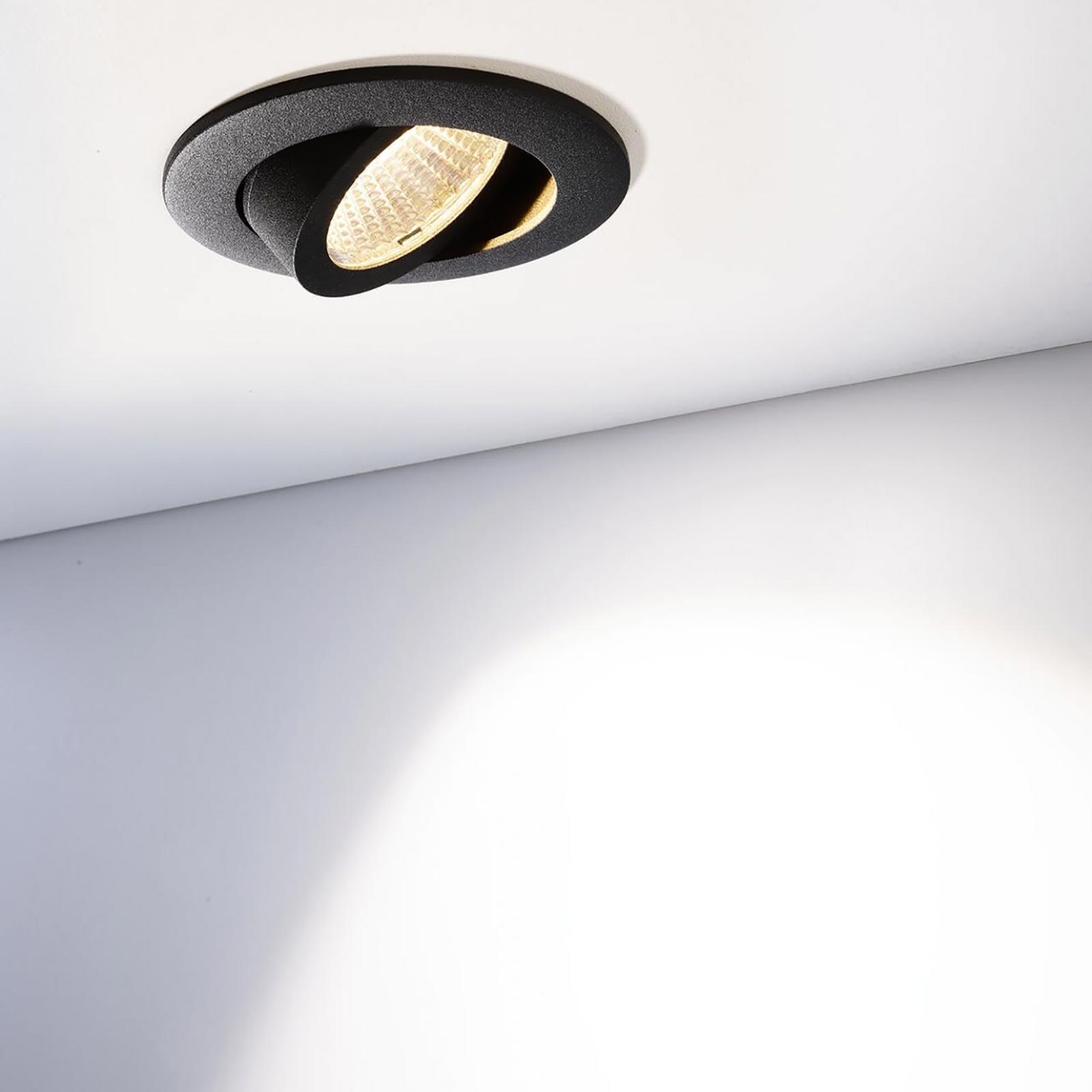 Il faretto ha la forma tonda e colpisce per il suo design sottile che consente l'installazione in soffitti di cartongesso che hanno un'altezza di soli 25mm. Disponibile in 3 colorazioni: Bianco, Nero, Grigio (Silver) per adattarsi a tutti i tipi di arredamento, monta un diffusore trasparente per una migliore diffusione della luce. Il diffusore orientabile consente di direzionare la luce secondo le proprie esigenze con un angolo max di 30 gradi.