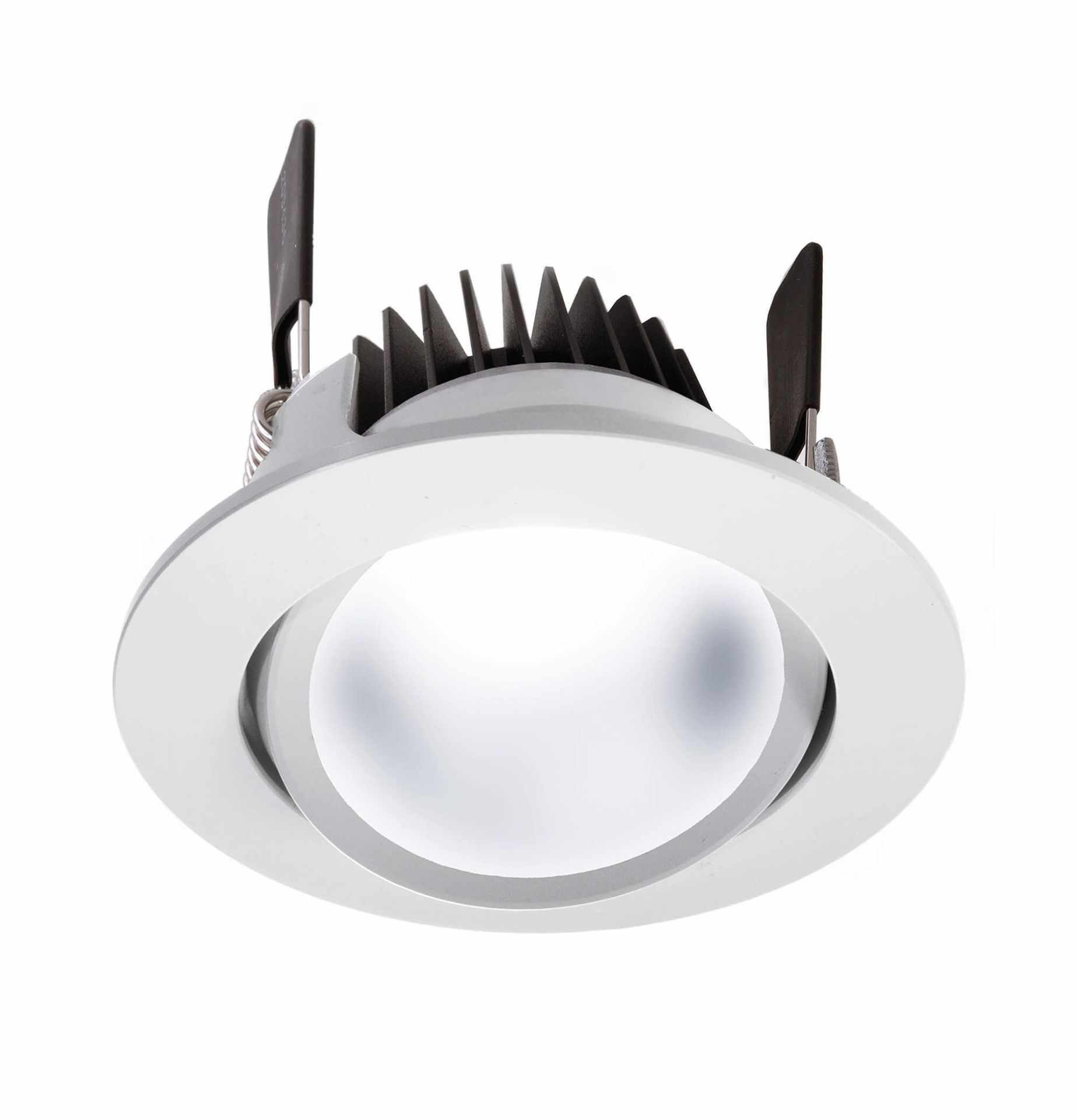 Realizzato in alluminio di alta qualità, ha la ghiera orientabile con un angolo d'inclinazione di 25 gradi, questo consente di direzionare la luce secondo le proprie esigenze. Disponibile di colore bianco . Dimensioni del faretto: Ø 108mm x 65mm - Foro per l'incasso Ø 95mm.