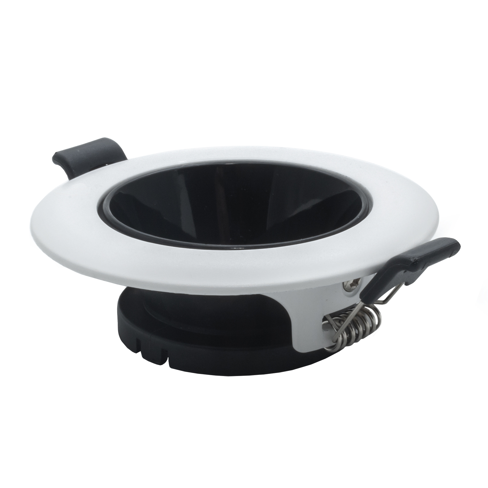 Il faretto è compatibile con fori da incasso da 75 mm e ha un diametro esterno di 90 mm per una profondità complessiva di 90 mm (con lampadina). Il sistema a molla permette un’installazione facile su controsoffitti in cartongesso, senza necessità di staffe o componenti visibili. L’alimentazione avviene direttamente a 230V, rendendolo adatto all’uso residenziale e commerciale.
