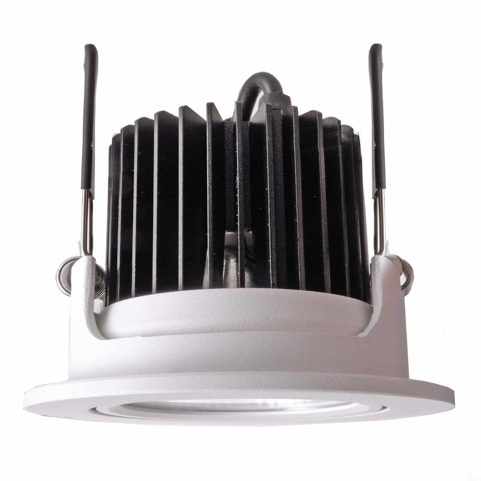 Realizzato in alluminio di alta qualità, ha la ghiera orientabile con un angolo d'inclinazione di 25 gradi, questo consente di direzionare la luce secondo le proprie esigenze. Disponibile in due colori: bianco e silver spazzolato. Dimensioni del faretto: Ø 108mm x 65mm - Foro per l'incasso Ø 95mm.