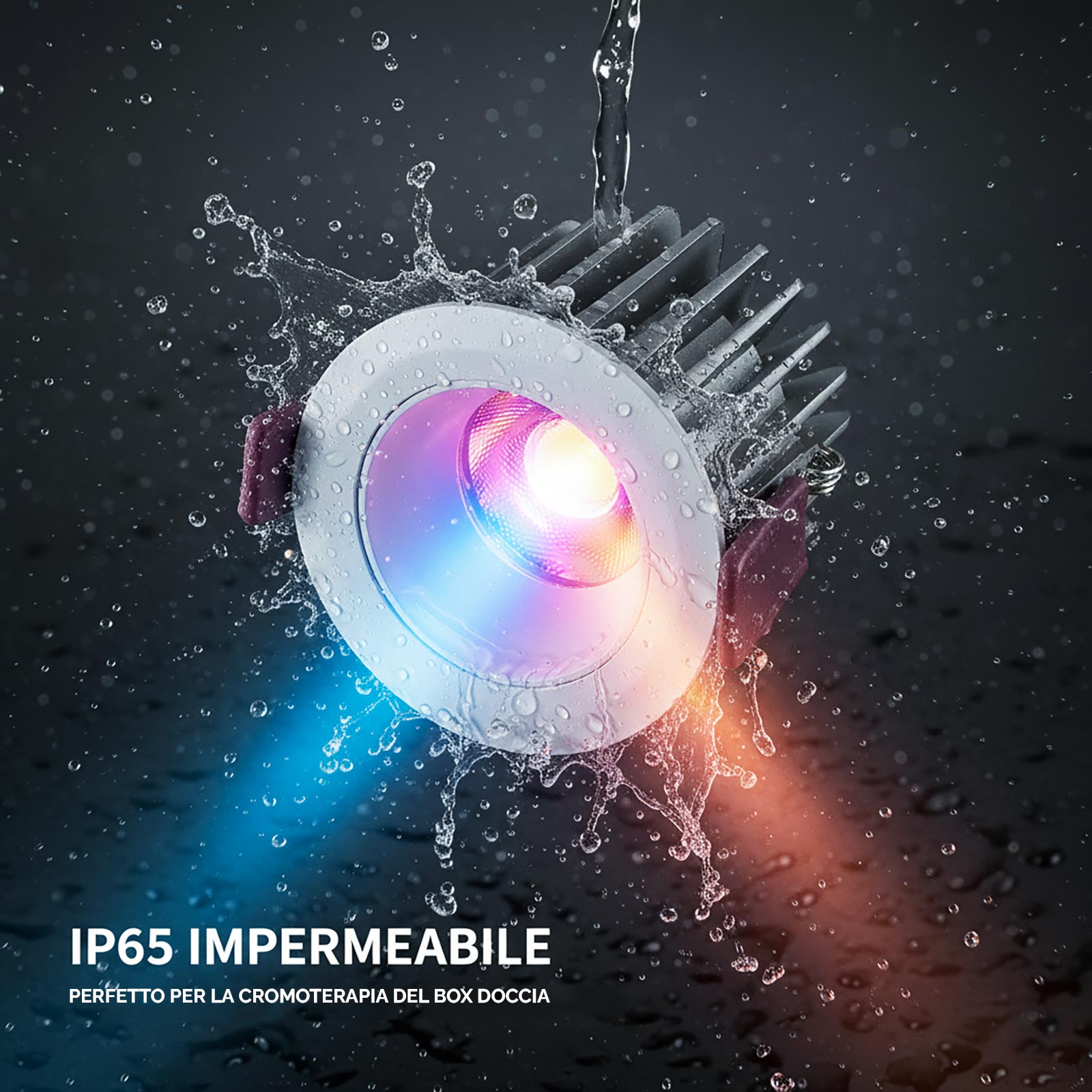 Il faretto da incasso IP65 RGBW è una soluzione luminosa versatile adatta per installazioni in ambienti interni ed esterni. Realizzato in alluminio con finitura bianca, garantisce resistenza, durata e un’ottima dissipazione del calore grazie al corpo in metallo. Il grado di protezione IP65 lo rende impermeabile e ideale per l’uso in spazi soggetti a umidità o intemperie come pensiline, tettoie, porticati, terrazzi, balconi, gazebi, giardini, ma non solo adatto anche per creare effetti di luce colorata nel bagno, box doccia, sauna e bagno turco.
