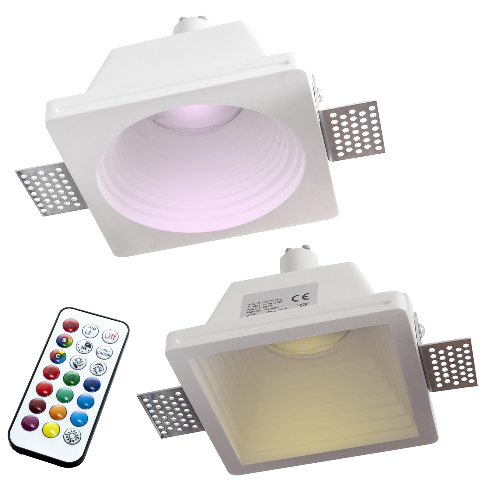 Compatibile con lampade GU10 - GU5.3 - MR16 - il faretto è intercambiabile. Una volta installato, stuccato e rasato può essere tinteggiato con pittura murale, la cornice scompare alla vista e rimane visibile solamente il foro dov'è alloggiata la lampada creando un effetto luminoso particolare.