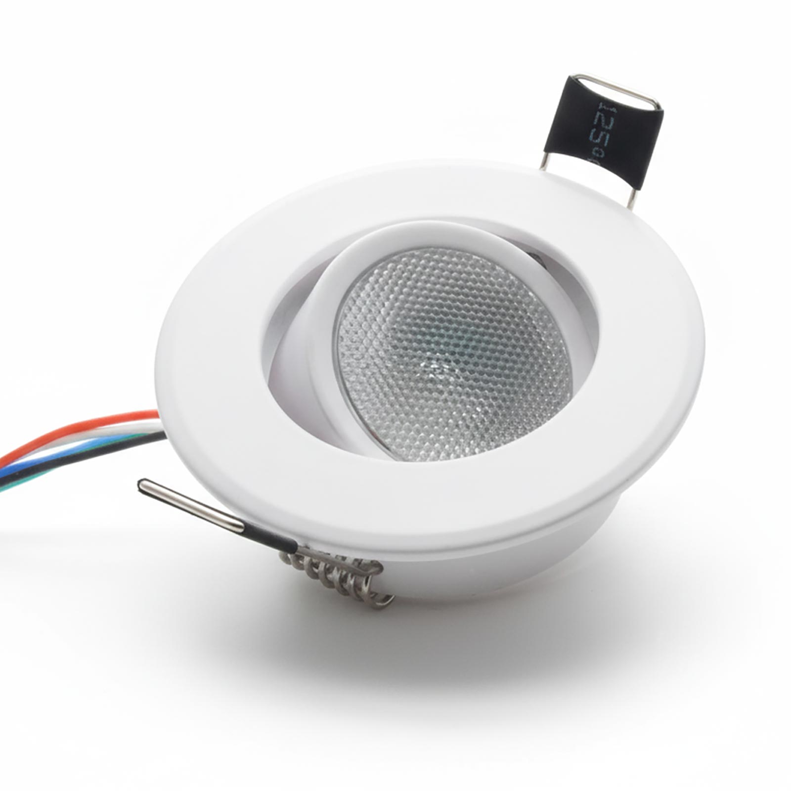 Dotato di tecnologia LED RGBW, questo faretto permette di ottenere sia luce bianca naturale 4000K sia luce multicolore per creare scenografie personalizzate. Con una potenza di 4W e un flusso luminoso di 400 lumen, assicura un’illuminazione mirata con angolo di apertura di 30 gradi. Inoltre il diffusore orientabile consente di direzionare la luce secondo le porprie esigenze.