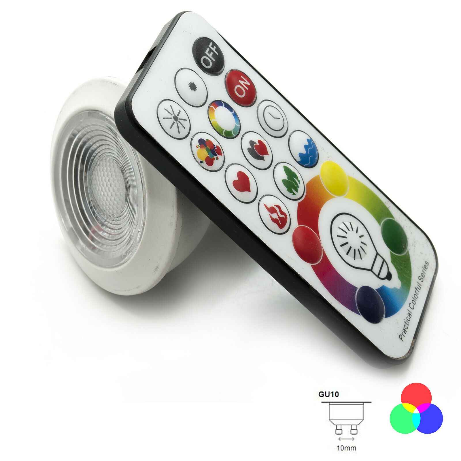 Il prodotto sarà fornito con lampada led spot: RGB o RGBW secondo la scelta - Entrambi le lampade sono fornite complete di telecomando per gestire tutte le funzioni. Nella confezione è incluso l'attacchino GU10.