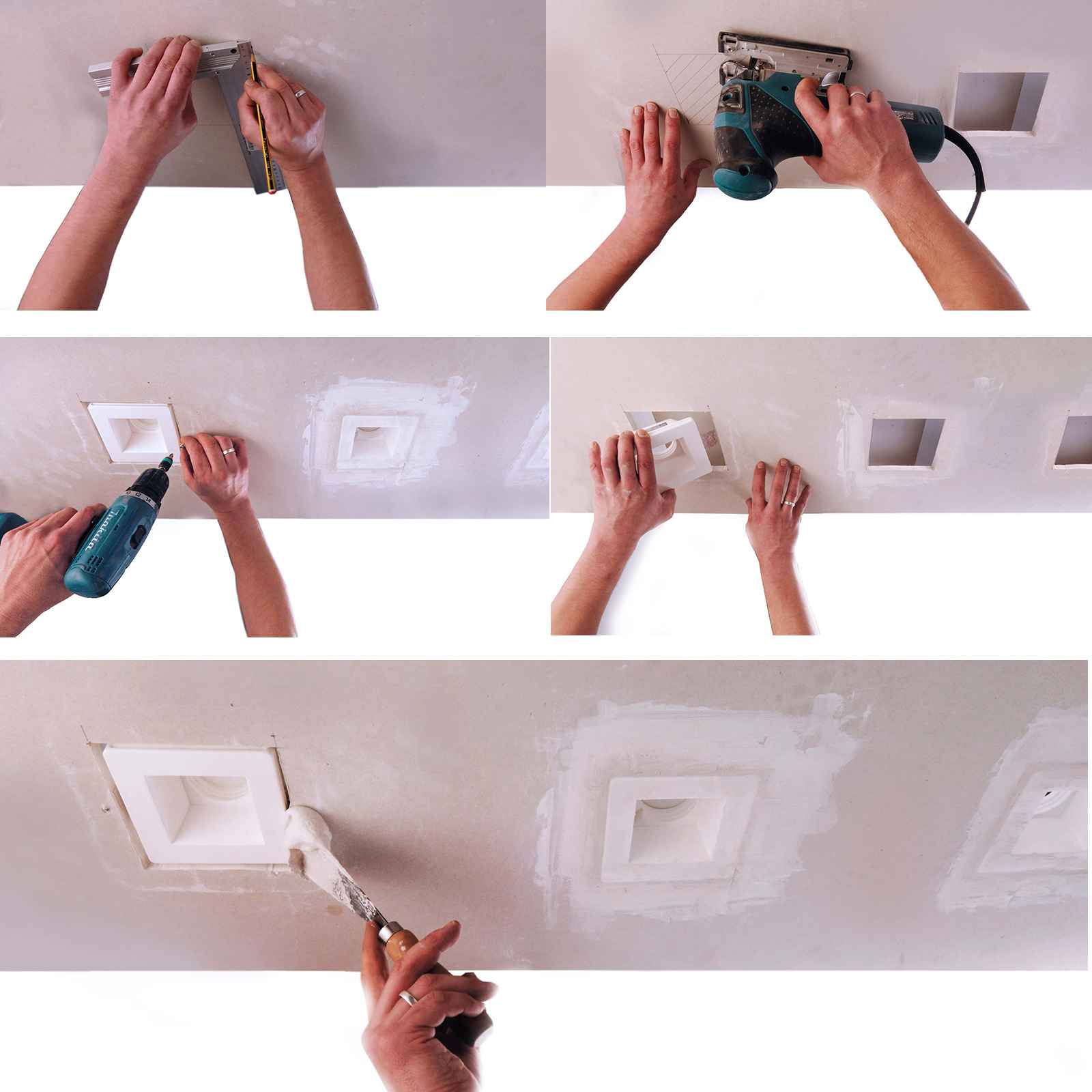 Una volta installato, stuccato e rasato può essere tinteggiato con pittura murale, la cornice scompare alla vista e rimane visibile solamente il foro dov'è alloggiata la lampada generando un effetto di luce molto particolare.