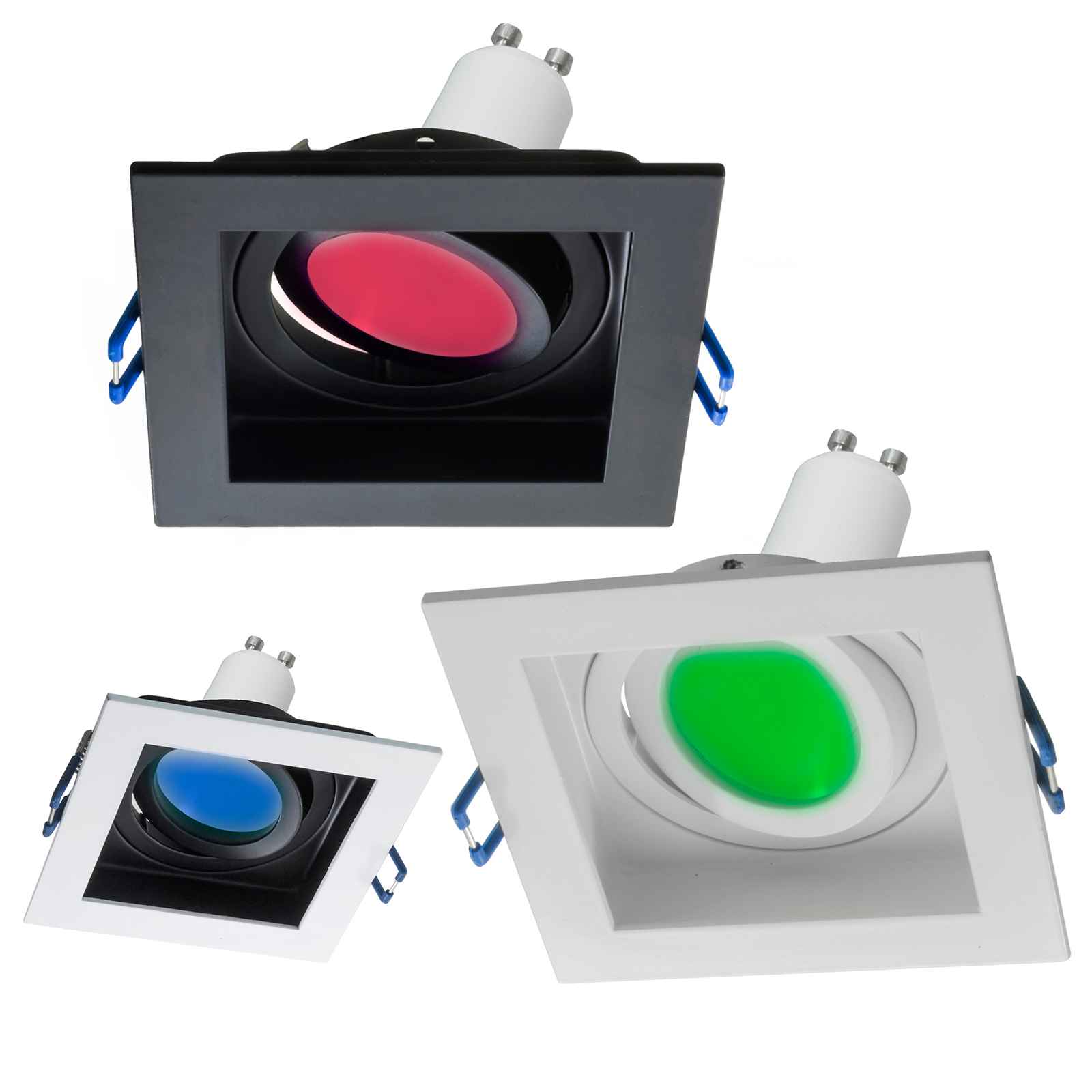 Faretto quadrato LED 6W RGB GU10 lampada orientabile incasso 90mm effetto luce colorata disco bar vetrine 230V