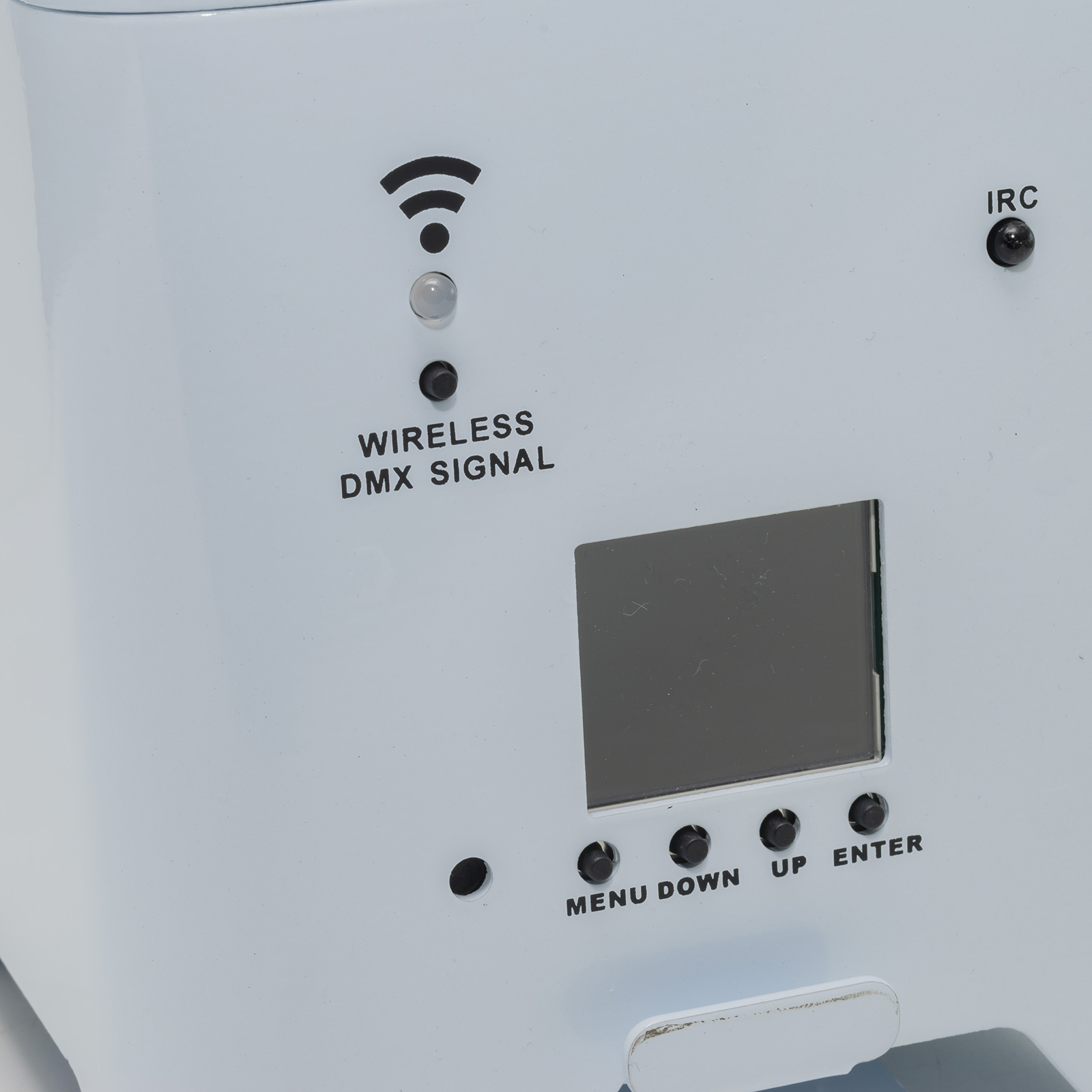 Dispone di tantissimi programmi preimpostati da utilizzare sia in modalità stand-alone che in modalità DMX 512. Dispone di display che consente di gestire tutte le funzioni. Inoltre grazie al WiFi possiamo gestire tutte le funzioni di questo proiettore tramite smarphone scaricando l'app.