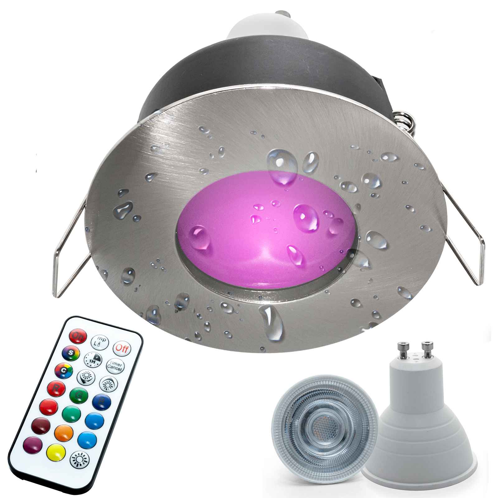 Il kit include: 1 faretto colore a scelta IP65 – 1 lampada led rgbw 6W– 1 telecomando infrared per le gestione dei colori – 1 portalampada con attacco GU10.