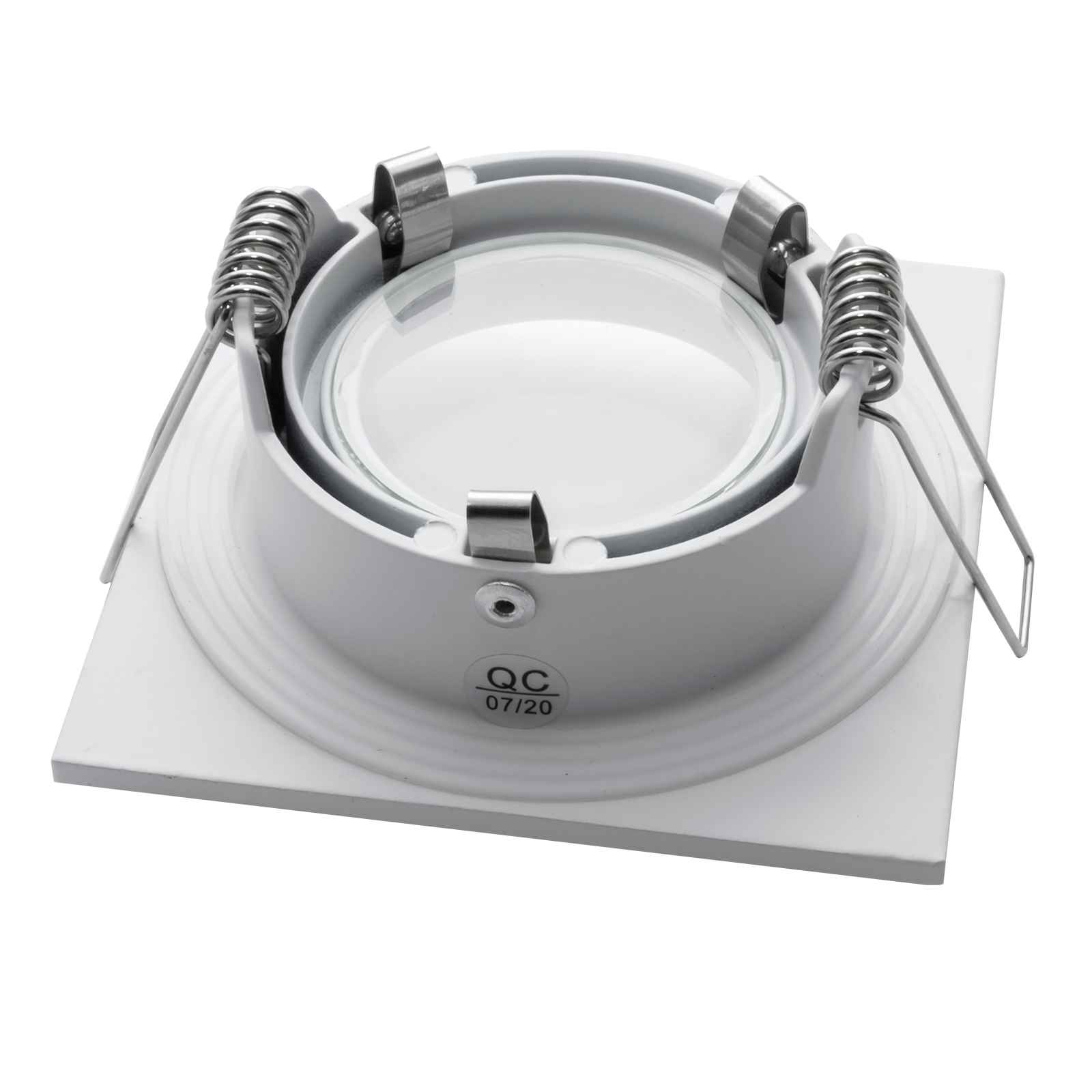Il protafaretto ha un design moderno, realizzato in alluminio pressofuso di colore bianco ha un grado di protezione IP65. Completamente a tenuta stagna è adatto per ambienti come box doccia, bagno turco, saune. Il porta faretto ha una diametro di 85mm. Il foro consigliato per l'incasso è di Ø 68mm. Disponibile di forma tonda o quadrata.