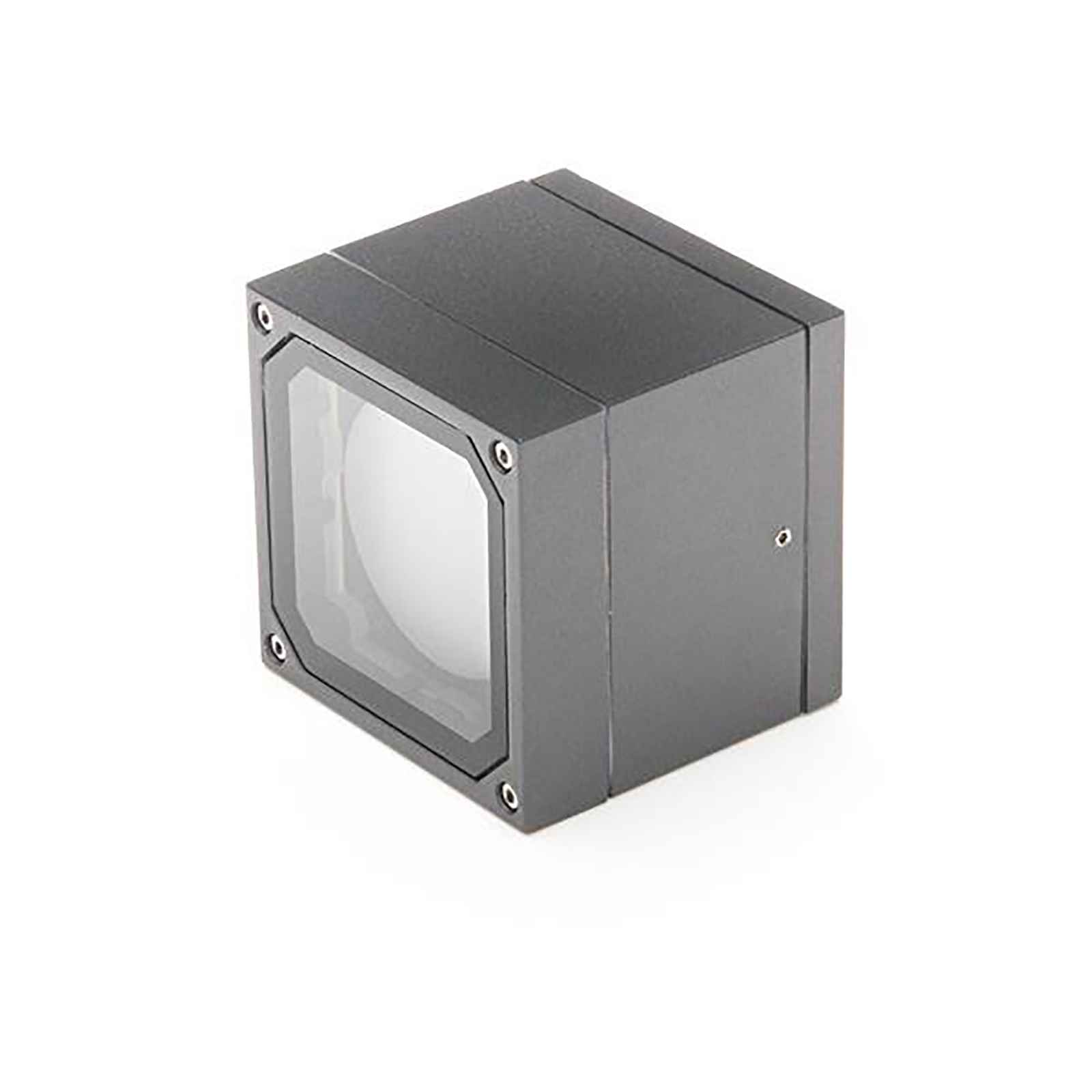 La struttura è in alluminio pressofuso e con la sua forma quadrata si presenta in stile contemporaneo e versatile nell'utilizzo. Ideale per fissaggio a soffitto o muro in ambienti umidi.