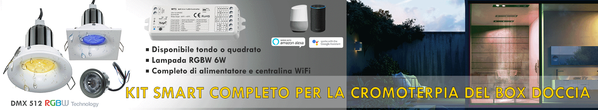 KIT faretto SMART 24V cromoterapia BOX DOCCIA lampada LED 6W RGB RGBW incasso IP65 bagno turco sauna centralina WiFi Alexa Google alimentatore