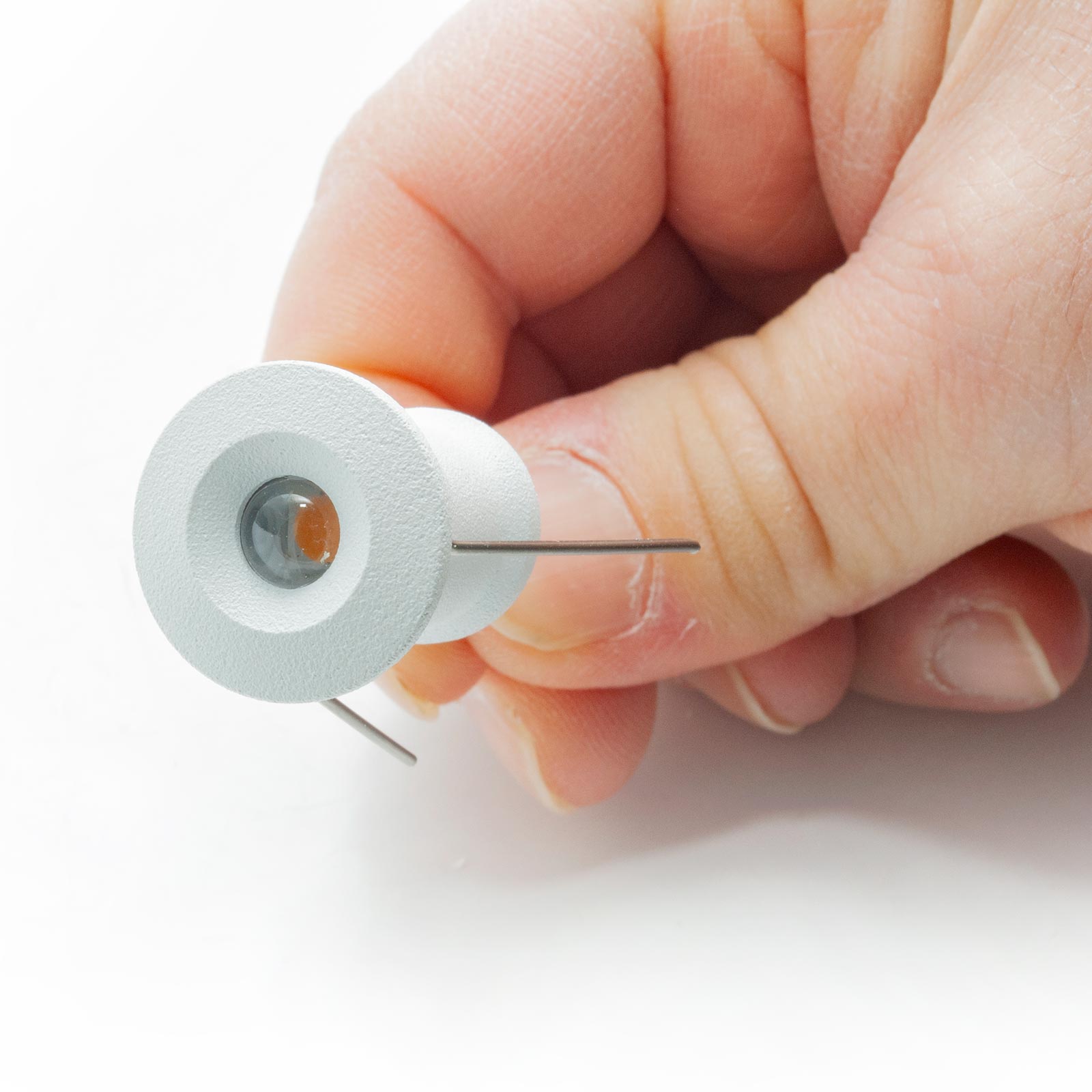 Il foro d'incasso consigliato è di 15mm mentre il diametro totale del faretto è di 20mm. Altezza del faretto: 25mm.