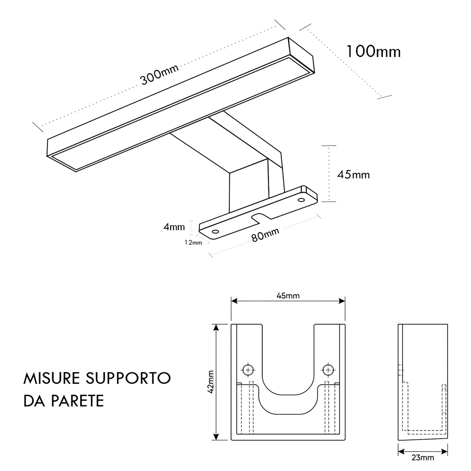 - Dimensioni dell'applique: 300mm x 100mm x 45mm