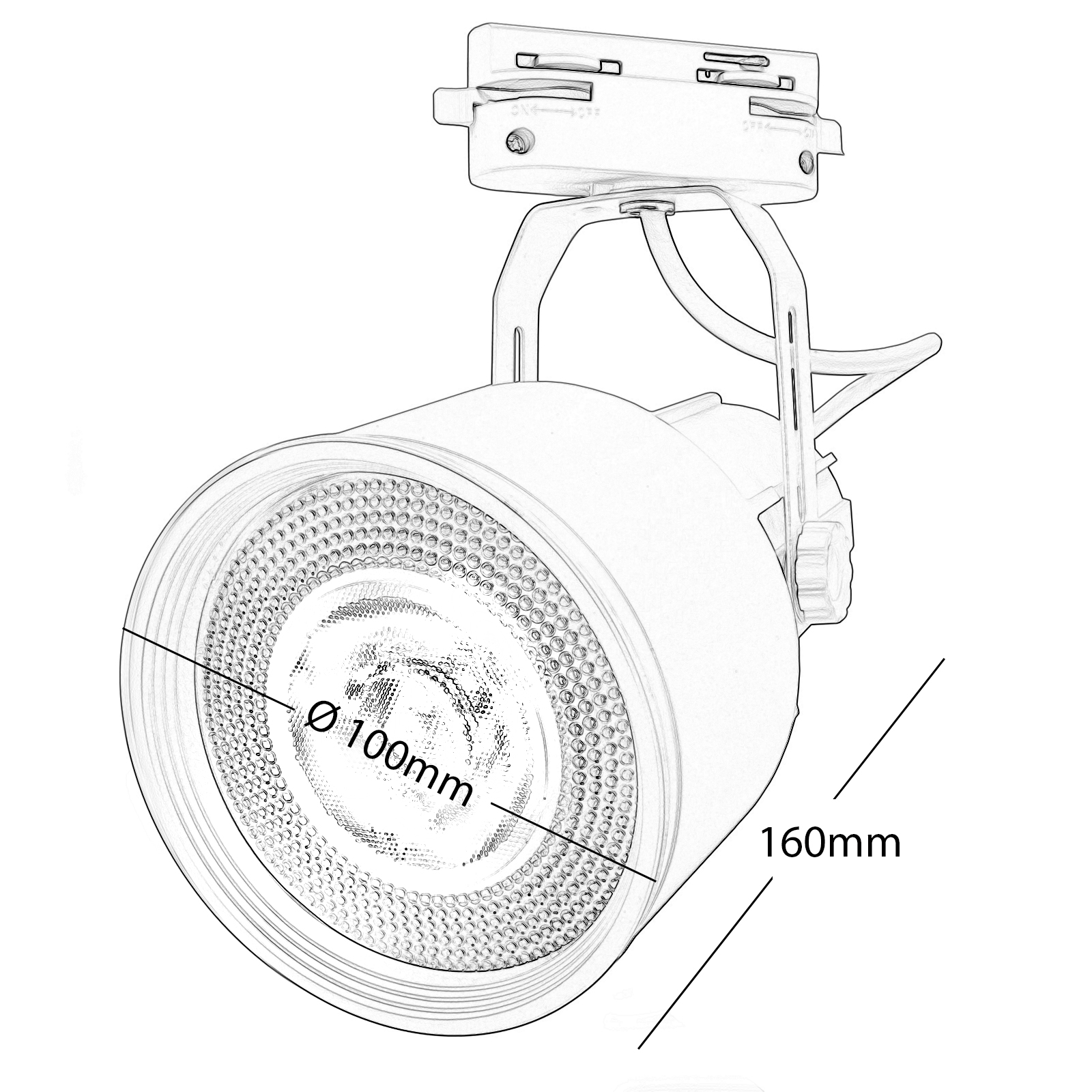 Il faretto misura: 160mm in lunghezza x Ø 100mm di diametro.
