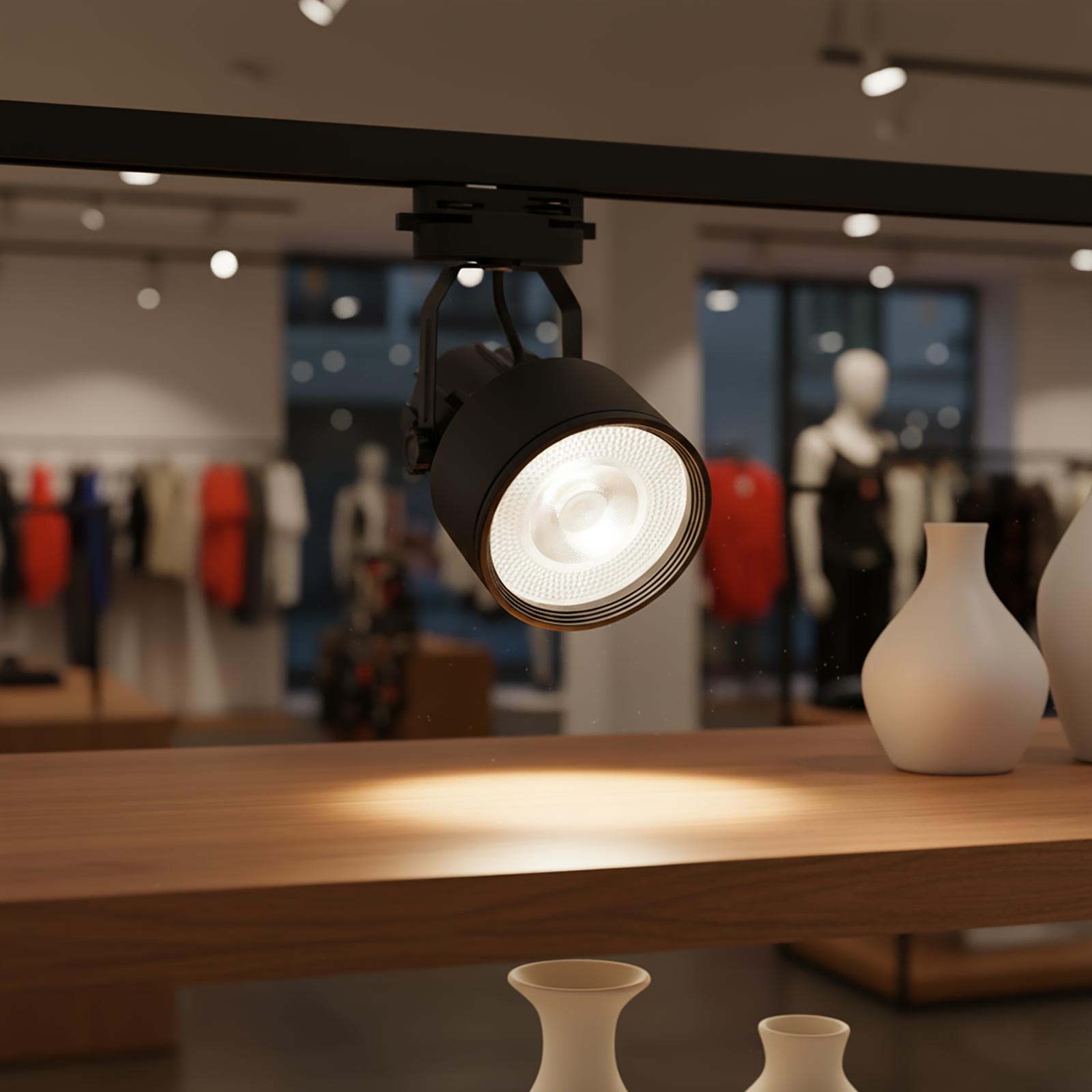 Ideale per l'illuminazione interna per uso commerciale come negozi, vetrine, attività commerciali, uffici, studi, ed in tutti quei posti dove si vuole installare un'illuminazione su binario. La lampada ha un angolo di luce stretto di 40 gradi con un'intensità luminosa pari a 850 lumen.