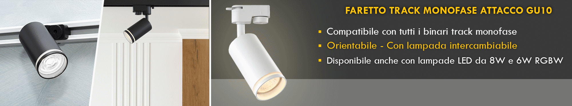 Disponibile in 2 colori bianco o nero per adattarsi meglio a tutti i tipi di arredamento - Adatto per sostituire i vecchi fari a ioduri o fari alogeni dall'elevato consumo, questo faretto permette di risparmiare fino al 85% sul consumo dell'energia elettrica e di donare all'ambiente una qualità luminosa superiore. Inoltre grazie alla possibilità di sostituire la lampada questo faretto track ha una durata maggiore nel tempo a differenza di prodotti con LED integrati.