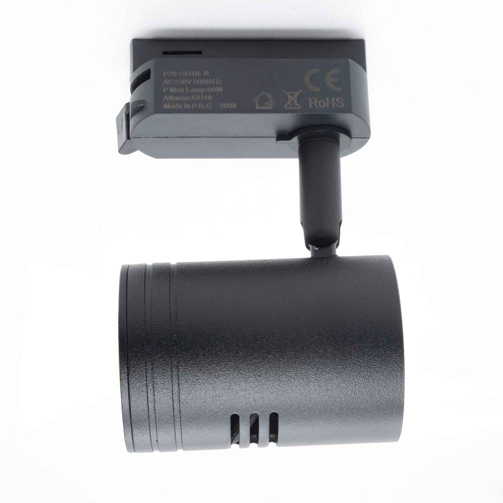 Faro LED track orientabile di forma a cilindro adatto per installazioni su binario monofase con possibilità di direzionare il fascio di luce secondo le esigenze. Corpo in metallo dal design moderno è dotato di attacco GU10 compatibile con la maggior parte di faretti GU10. Adatto per l'illuminazione interna di negozi, vetrine, attività commerciali, uffici.