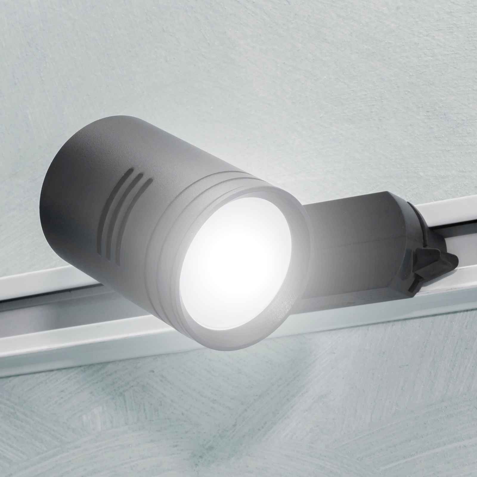 Faro LED track orientabile di forma a cilindro adatto per installazioni su binario monofase con possibilità di direzionare il fascio di luce secondo le esigenze. Corpo in metallo dal design moderno è dotato di attacco GU10 compatibile con la maggior parte di faretti GU10. Adatto per l'illuminazione interna di negozi, vetrine, attività commerciali, uffici.