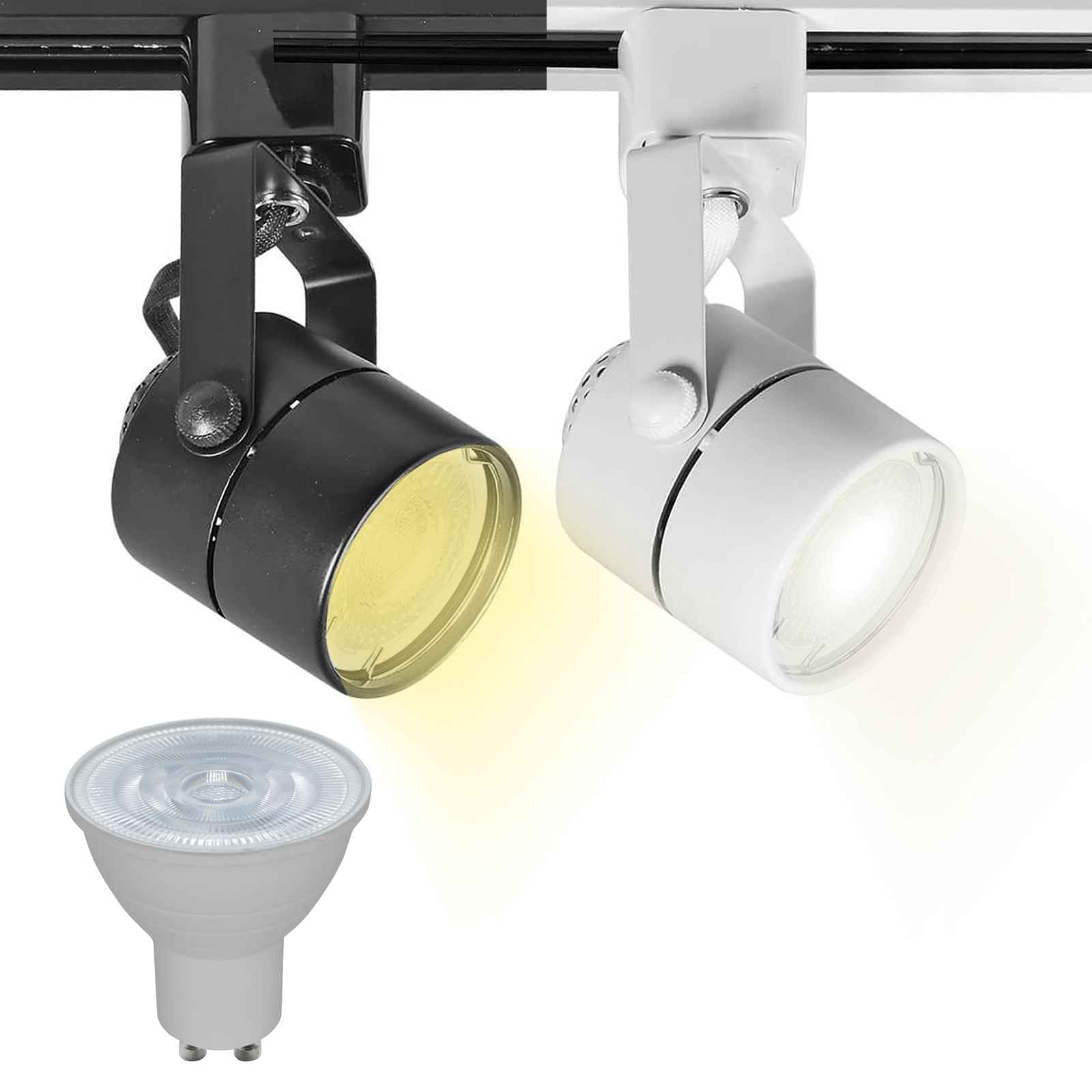 Faro LED track orientabile di forma tonda adatto per installazioni su binario monofase con possibilità di direzionare il fascio di luce secondo le esigenze. Corpo in metallo dal design moderno è dotato di attacco GU10 compatibile con la maggior parte di faretti GU10. Adatto per l'illuminazione interna di negozi, vetrine, attività commerciali, uffici.