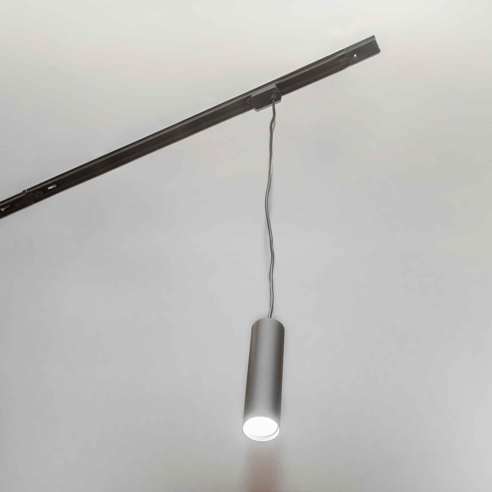 Lampada moderna a sospensione con attacco per binario monofase, realizzata in alluminio di forma cilindrica da design slim è disponibile in 2 colori bianco o nero secondo l'arredamento. Ideale per l'illuminazione interna di bar, caffè, ristoranti, negozi, ambienti domestici dall'arredamento moderno, adatta per sfruttare la versatilità l'illuminazione su binario track.